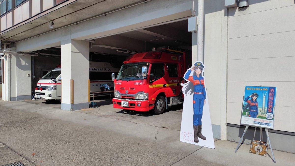 大垣市消防団とコラボした麻衣さんのパネルは、大垣市役所東側にある消防署の南側にあります! #青ブタ #大垣 #出初式 #消防団 pic.x.com/qZWp6Nf8Z8