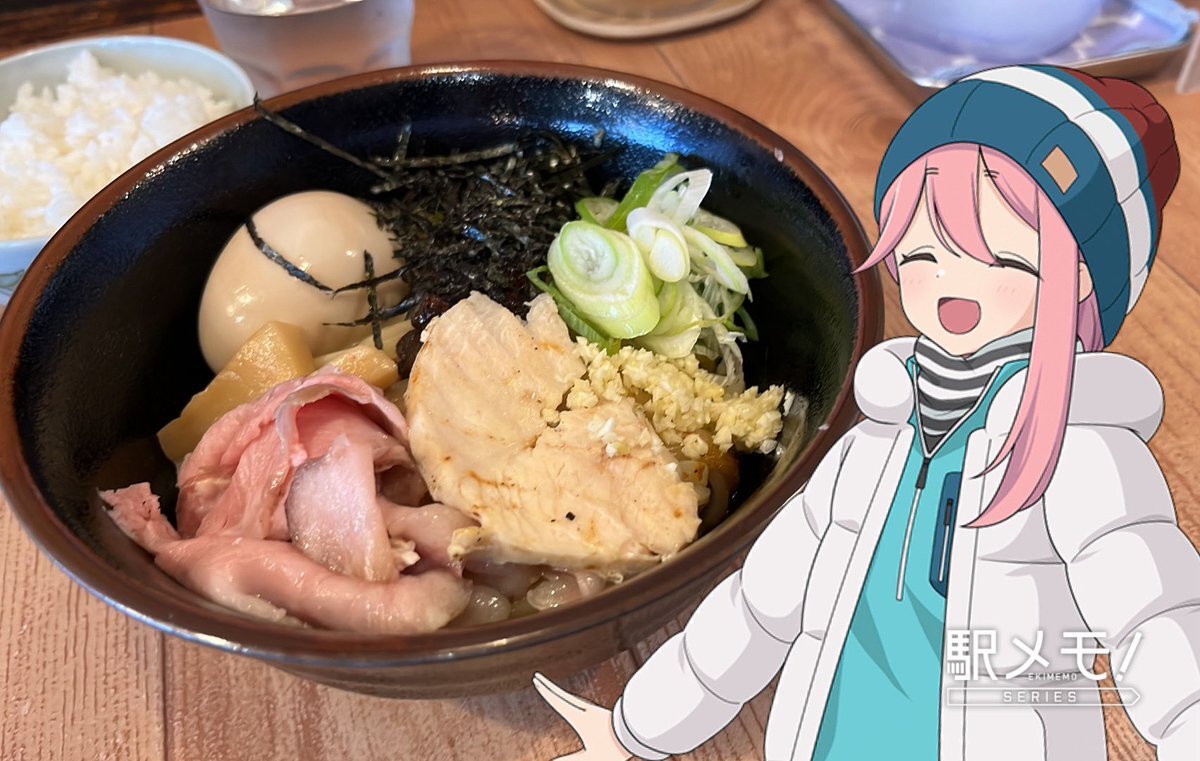 函南の麺屋しずくだよ〜 大人気の特製CurryまぜSOBAを注文だねぃ! スパイシーな香りと太麺の組み合わせはうま〜♪ 味玉やレアチャーシューも食べ応えがあって嬉しいねぃ! 〆の追いライス🍚まで楽しめる至高の逸品だよ〜 #麺屋しずく #函南 #ゆるキャンΔ #駅メモ pic.x.com/UbRryJw37R