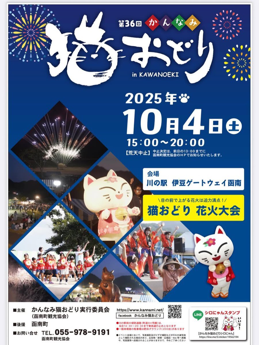 10月4日は #かんなみ猫おどり!  今年も #マモリくん が楽しみにしてるお祭りが開催!#シロにゃん の踊りはいつもかわいい! え?今年はマモリくんも踊りたいって? ぜひ #川の駅伊豆ゲートウェイ函南 にGO #函南 #祭り 【クラウドファンディング実施中!】 satofull.jp/projects/busin… pic.x.com/D9HFSq0iW2