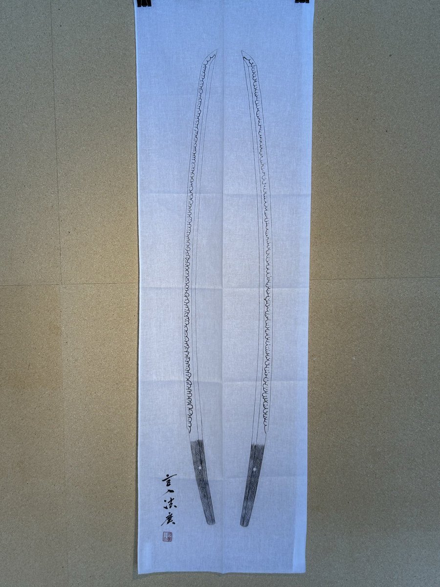 11/15(土)から始まる #刀が映す東御のけしき 展において、#宮入法廣 刀匠《太刀 法廣 平成二十三年正月弥生》の実寸大押形てぬぐいを、会場と観光窓口で限定販売します! 日常の中で匠の技を感じれられる一枚。 数量限定の特別制作です。ぜひお早めに。 #東御市 #刀剣 pic.x.com/9Y6h3RGWaR