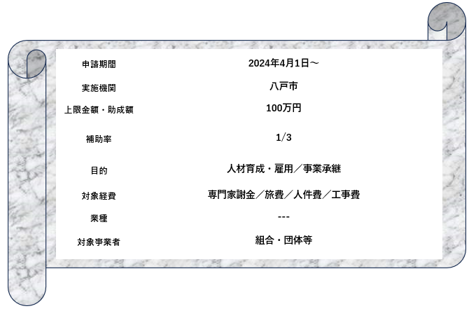 青森県八戸市の補助金。 八戸市商店街後継者育成支援事業補助金 市内の商店街振興組合等による、商店街の事務局及び加盟店舗等の後継者育成・確保に係る費用の一部を補助するものです。 city.hachinohe.aomori.jp/jigyoshamuke/y… #助成金 #補助金 #奨励金 #助成金サポート #補助金サポート #リスキリング #生成AI pic.x.com/aPiQsPXVhY