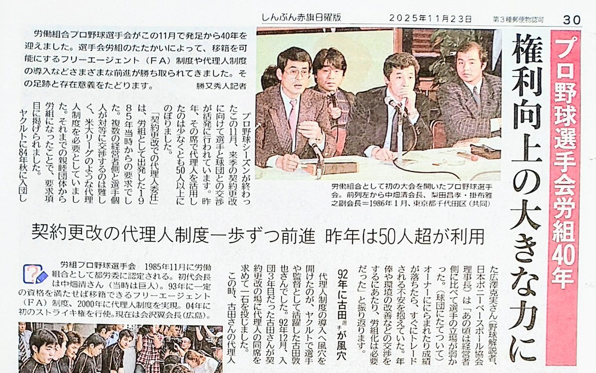 赤旗日曜版はスクープだけじゃない。 労働組合であるプロ野球選手会の取組の記事も。日本のプロ野球発展にも貢献している。 しかし、プロ野球界のドン渡辺恒雄さんの脅しを国会で取り上げ、正したのは知らなかった。 #赤旗日曜版 #スクープだけじゃない #労働組合 #プロ野球選手会 pic.x.com/TNmz5zYPFw