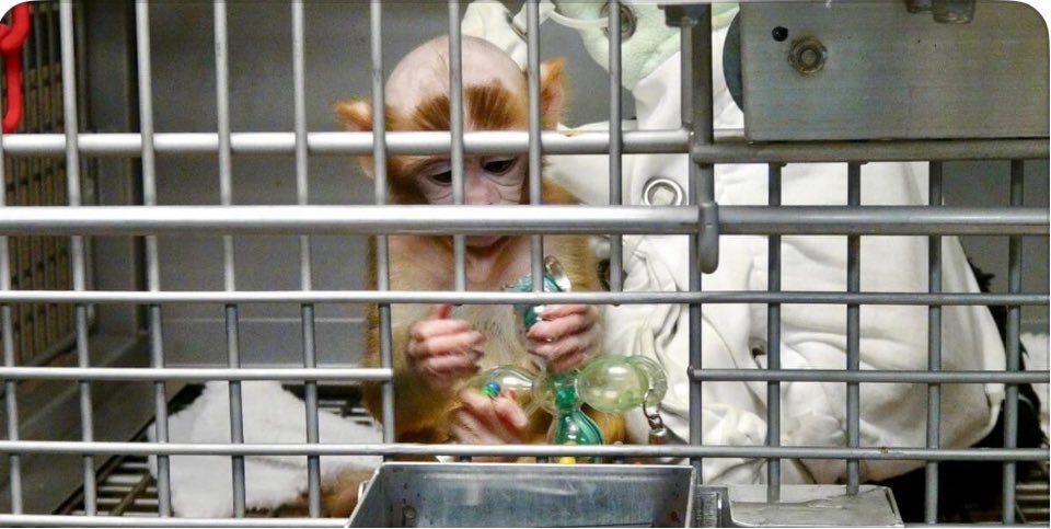 実験のために頭を丸坊主に剃られ 檻の中で たった独りで遊ぶ猿の子。 #peta #動物実験反対 #againstanimaltesting #fightinganimaltesting #ヴィーガン #vegan #生類憐みの令 #徳川綱吉 #動物解放 #animalliberation pic.x.com/wYbtcVYn2V