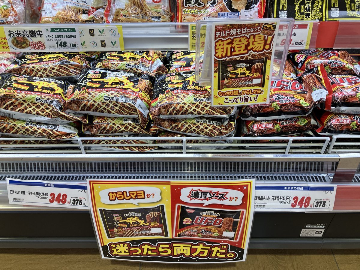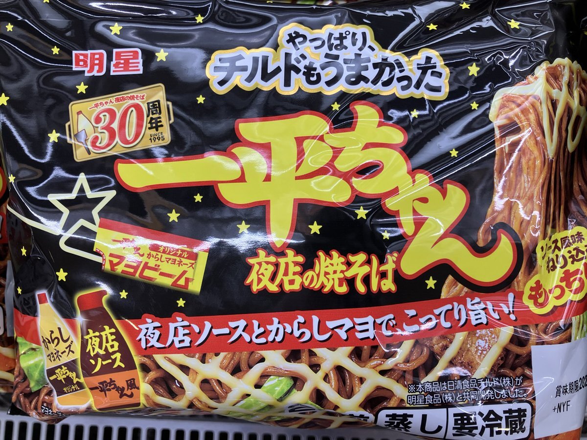 【#東武ストア #勝どき 店からのお知らせ】 チルド焼そばになって新登場‼️ 『日清チルド 明星 一平ちゃん夜店の焼そば』 夜店ソースとからしマヨで、こってり旨い😋 からしマヨか?濃厚ソースか? 迷ったら両方だ。 pic.x.com/JyJTvXIb4C