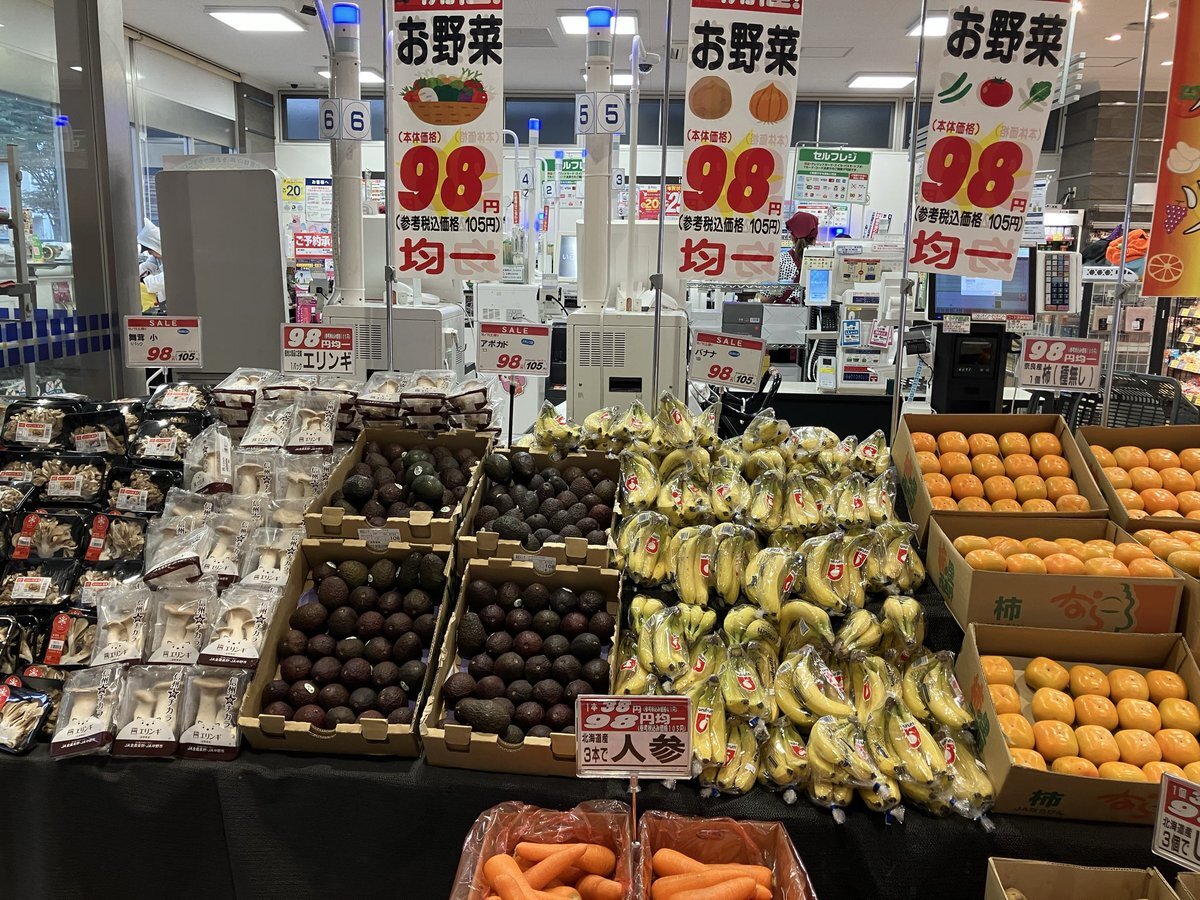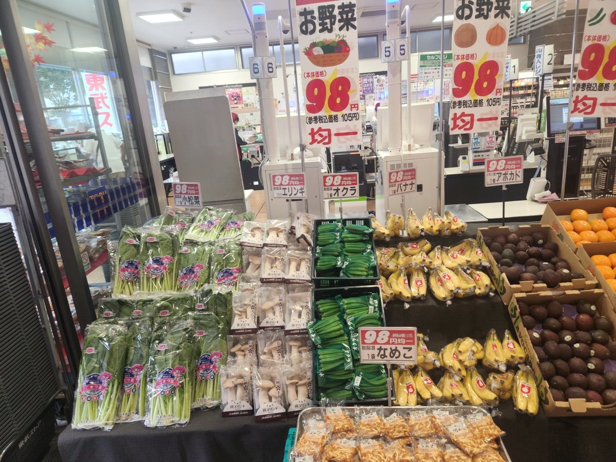 【#東武ストア #勝どき 店からのお知らせ】 お野菜・果物98円均一セール開催中♪ 舞茸🍄エリンギ🍄アボカド🥑にんじん🥕 じゃがいも🥔玉ねぎ・バナナ🍌柿 ご来店お待ちしております💁🏻♀️ pic.x.com/3WQUiFWLOD