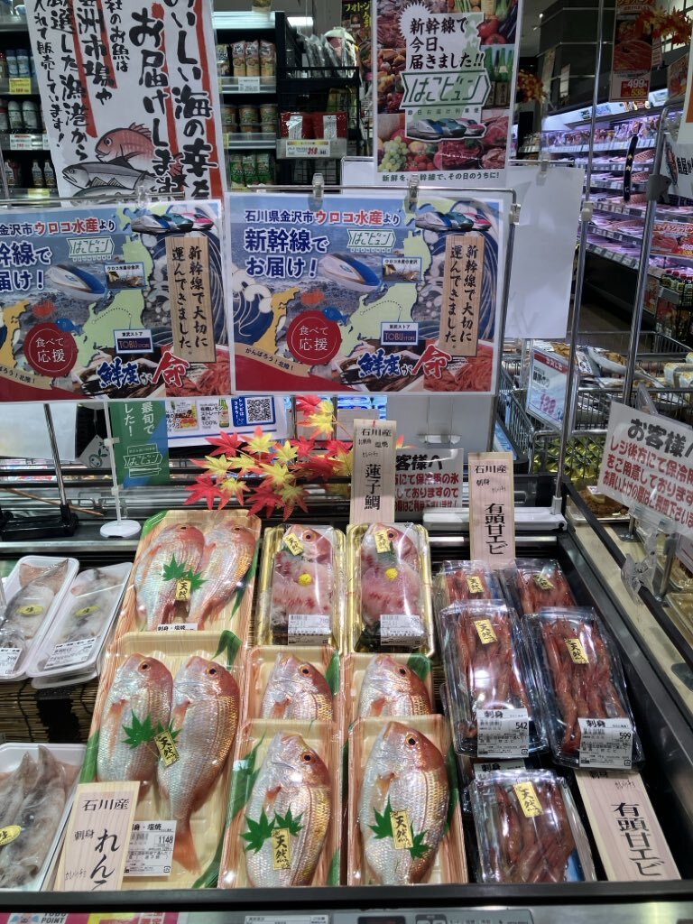 【#東武ストア #勝どき 店からのお知らせ】 ただ今石川県朝どれ鮮魚🐟が 北陸新幹線🚄 #はこビュン で鮮度抜群で 到着しました♪ 蓮子鯛🐟有頭甘海老🦐 刺身・塩焼・煮付け・カルパッチョに 市場の商品とは鮮度が 違いますよ💁♀️ pic.x.com/XzwRwUIqTa