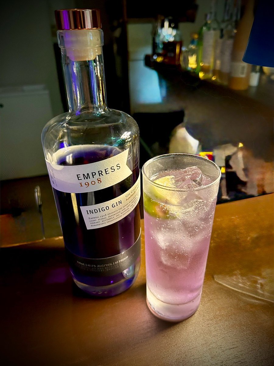 エンプレス1908のジントニック 注いだ瞬間紫からピンクへ 今日もオープンしてます #BARbiz #勝どき #アクアリウムバー #ジントニック #エンプレス1908 #週末バー pic.x.com/kBWO6ybCeF