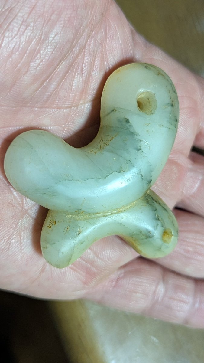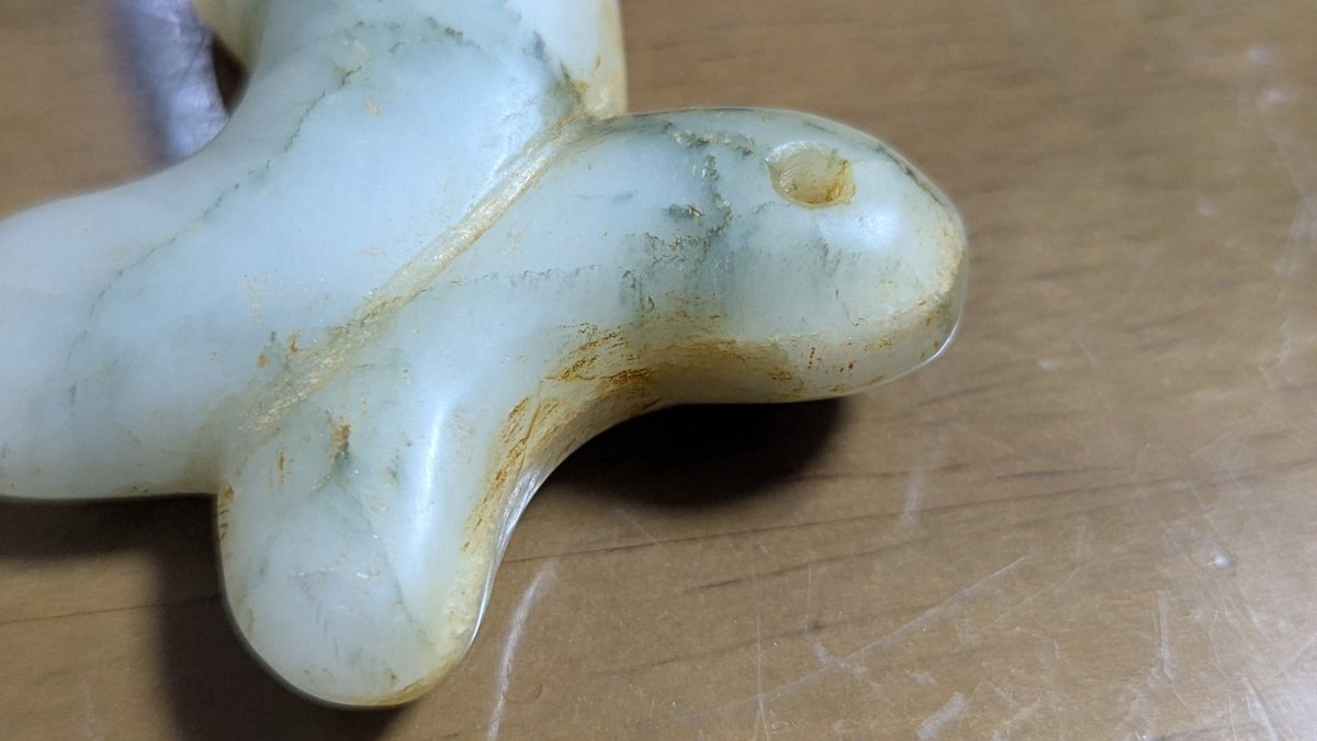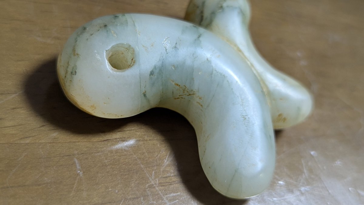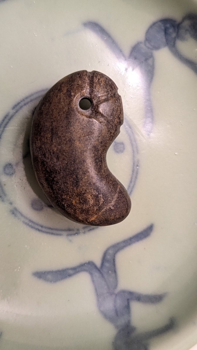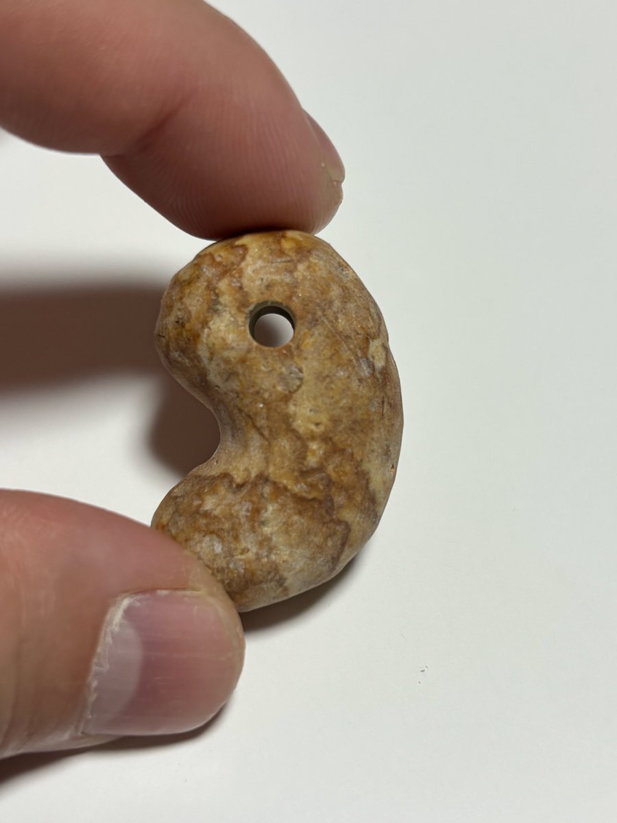 メルカリで5200円で買った勾玉。試しに買ってみたんだけど、なんか本当に出土した感じがある。翡翠とかじゃないにしても、本物の出土品ってこのくらいの値段で買えるものなのか? #勾玉 pic.x.com/Pb7eKxN8gS