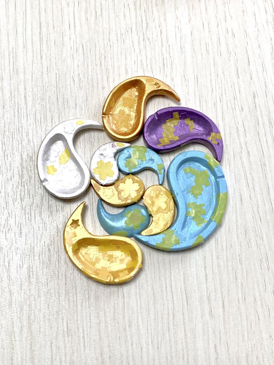 やっとこさ3色目の塗装完了🤟🏻🧙🏻♂️ いよいよマステを剥がしていくのだが、どんな風に仕上がっているか、ちょっとドキドキするぜ🥴 #勾玉 #マスキングテープ pic.x.com/i8emjXXx6v x.com/sohoho_mizuhik…