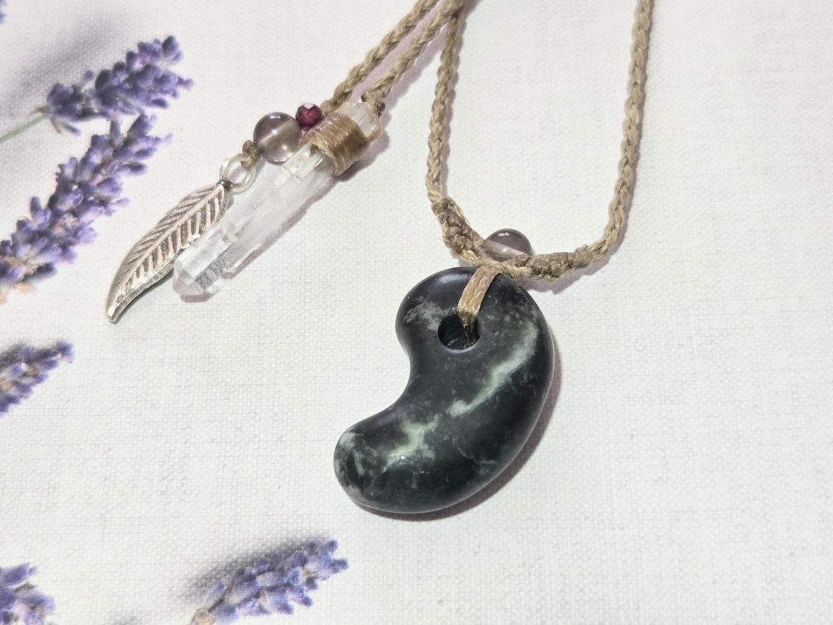 #東京ミネラルショー (通称 #池袋ショー )お品書き⑦ 【青梅黒翡翠/勾玉ペンダント】 敢えて仕上げ磨きを施さずに翡翠独特の風合いを残した勾玉をシンプルなペンダントに仕上げました。 手で触れるうちに自然な艶が出て参ります。 まさに「自分で育てる翡翠」ですね。 #糸魚川翡翠 #勾玉 pic.x.com/iM2qHH5JVv