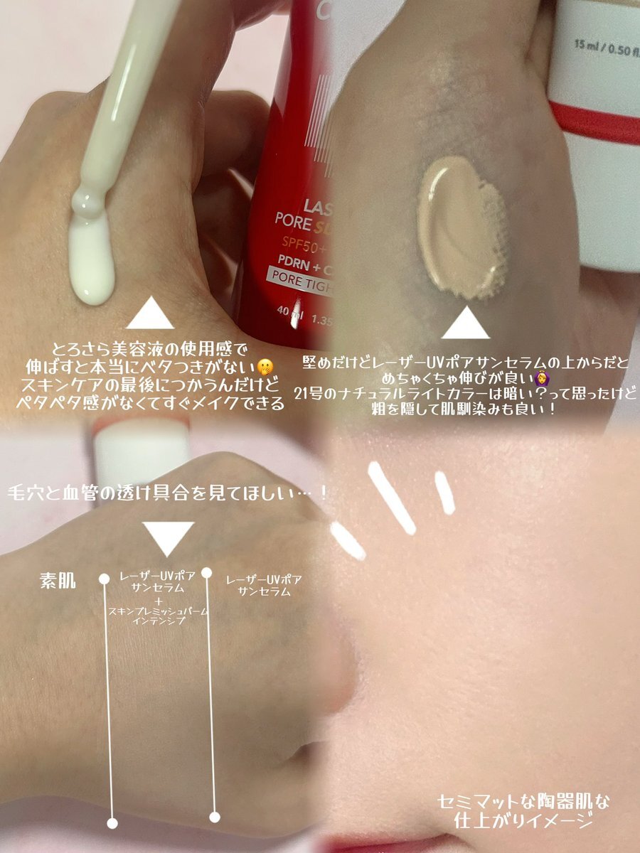 ベース”最強”コンビ見つけたかも👀 レーザーUVポアサンセラムで肌のキメを整えてしっかり日焼け対策☀️→美容成分たっぷりのスキンブレミッシュバームインテンシブを重ねたら、ナチュラルカバーでまるで素肌が格上げされた感じに🙆‍♀️ #セルフュージョンC #日焼け止めセラム #BBクリーム #化粧下地 pic.x.com/BQIR2XtgAS
