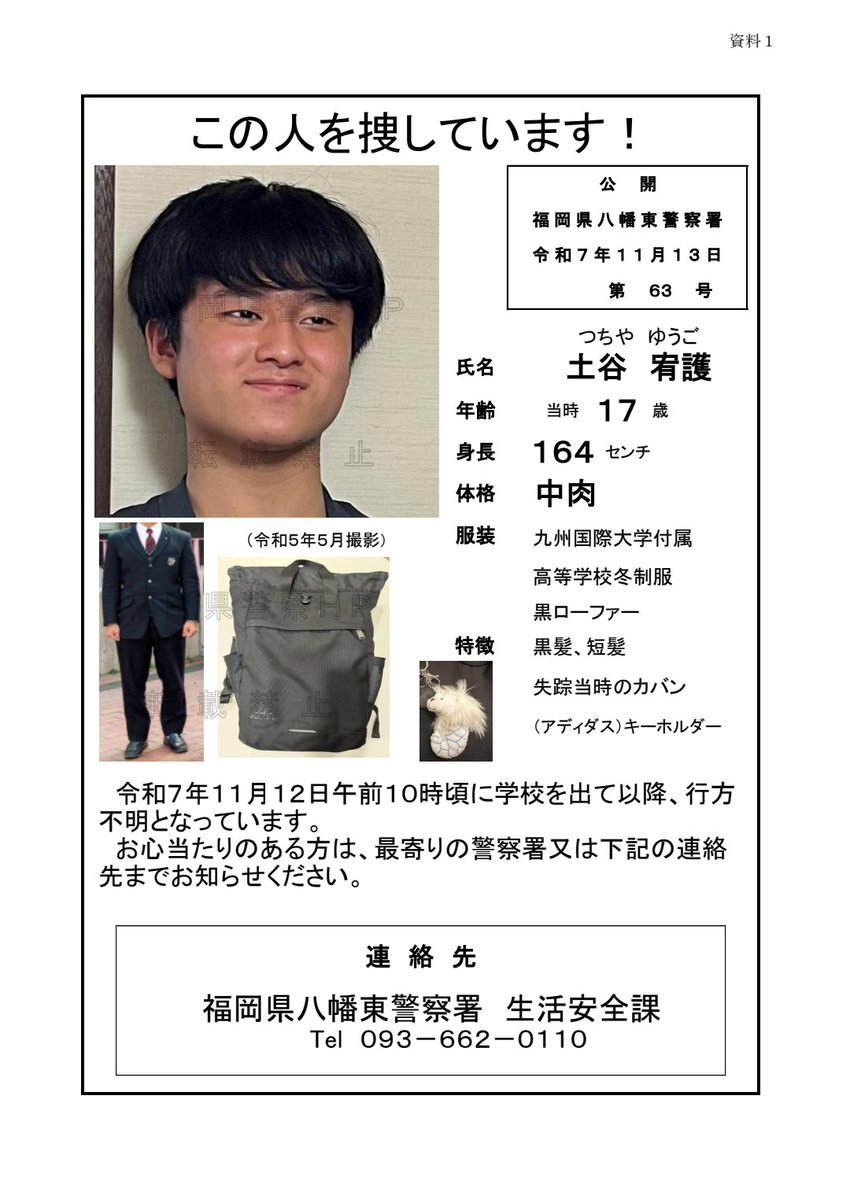 保護者の方が探されているそうです。 #北九州 #八幡東区 #高校生 #捜索 #拡散希望 職場が小倉のため、下関からだと移動圏内かなと思います。 通勤の際に注意深く周りを見るように努めます。 pic.x.com/tQyDXXRWNl x.com/HRho9BCpXg8140…