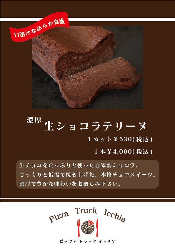 【11月15日 北本カレーフェスティバル参加メニュー紹介⑩】 イッチア 生ショコラテリーヌ(スイーツ) 生チョコをたっぷりと使った自家製ショコラ。じっくりと低温で焼き上げた本格チョコスイーツ。濃厚で滑らかな味わいをぜひお試し下さい! #北本カレーフェスティバル #埼玉県 #北本市 pic.x.com/IsPblFuMmB
