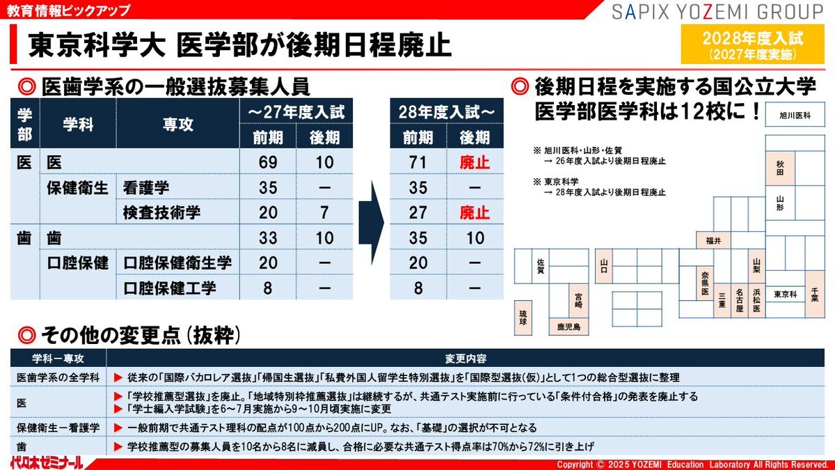 #教育情報ピックアップ 12/19(金)号 【1/2】#東京科学大 ▼#医学部 が後期日程廃止 admissions.isct.ac.jp/ja/news/185iks… ▼「医工連携人材養成コース」を新設へ admissions.isct.ac.jp/ja/news/xjls2y… pic.x.com/uta5CQMtLC