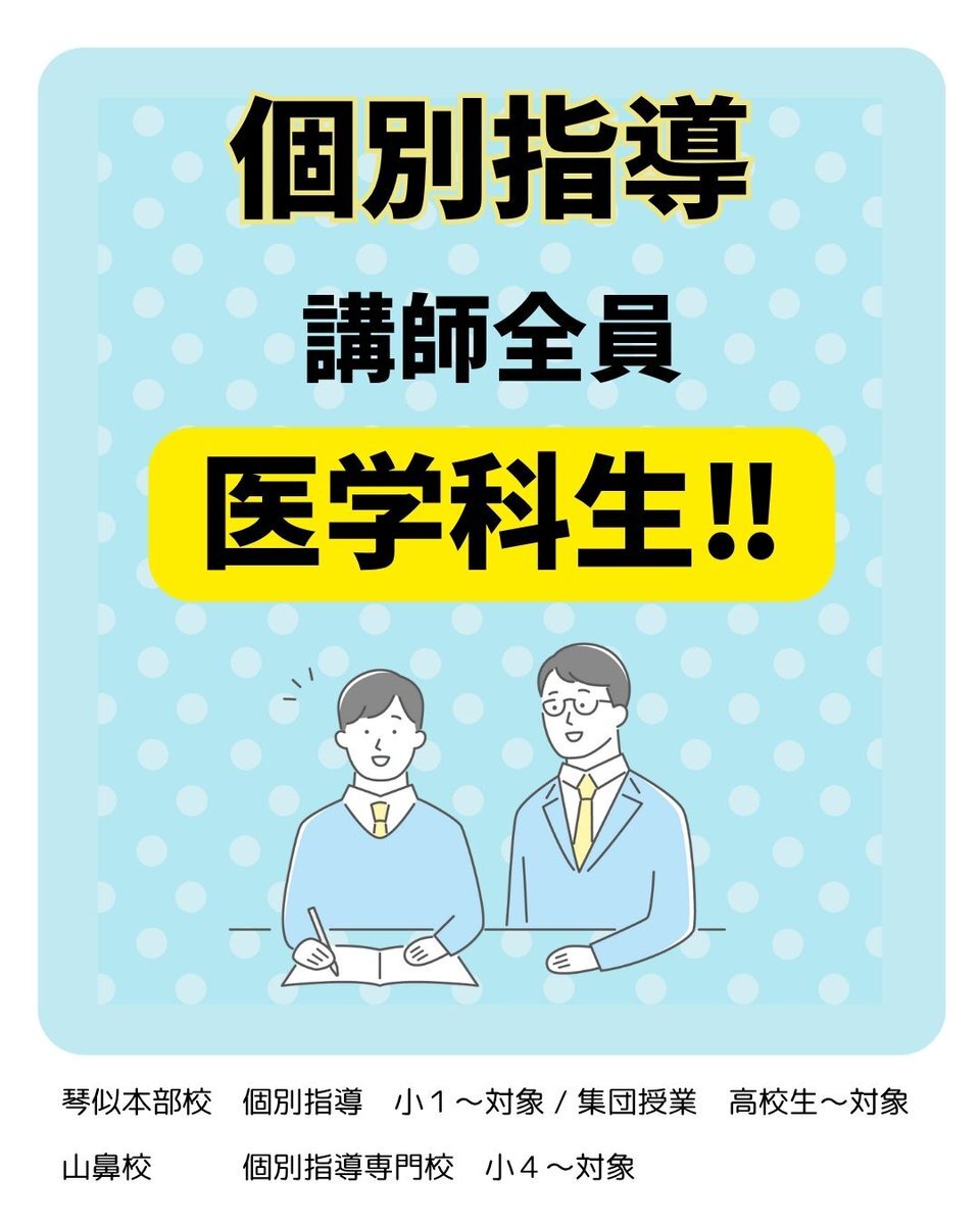 本気で医学部へ逆転合格を目指す受験生は 回り道不要!個別指導の横浜予備校 既卒医学部コース ▷科目別・能力別の1名~4名クラス ▷医学部予備校の現役プロ講師 ▷学費がかなり安い ▷熱い授業とおせっかいで逆転合格 気になる詳細は↓ Juken.around50pedia.com/juken-107/ #医学部 #逆転合格 #浪人生