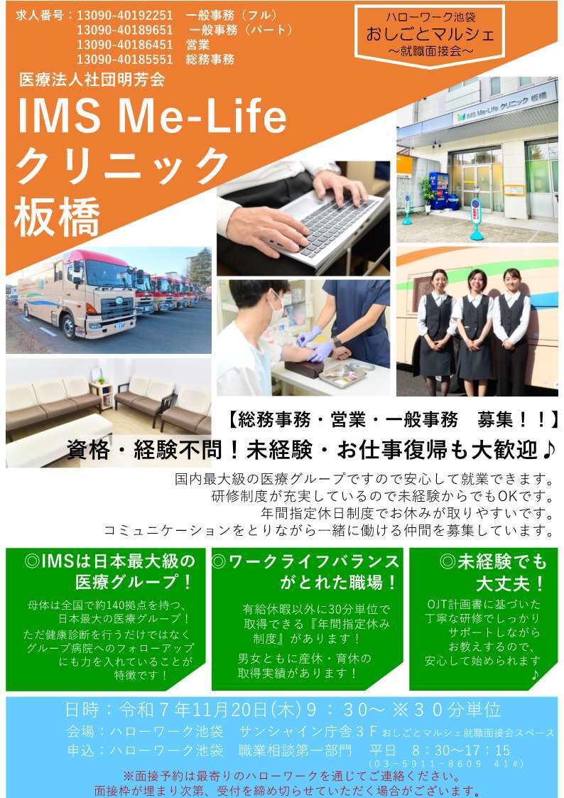 【求職者向けイベント】 IMS Me-Lifeクリニック板橋が参加します🙌 日時➤11/20(木) 9:30~ 場所➤ハローワーク池袋 サンシャイン庁舎3F クリニック事務職、営業職、総務課が気になる方! 是非お待ちしています☺️ @2号 #企業公式つぶやき部 #採用 #事務職 #医療事務 #新卒 #転職