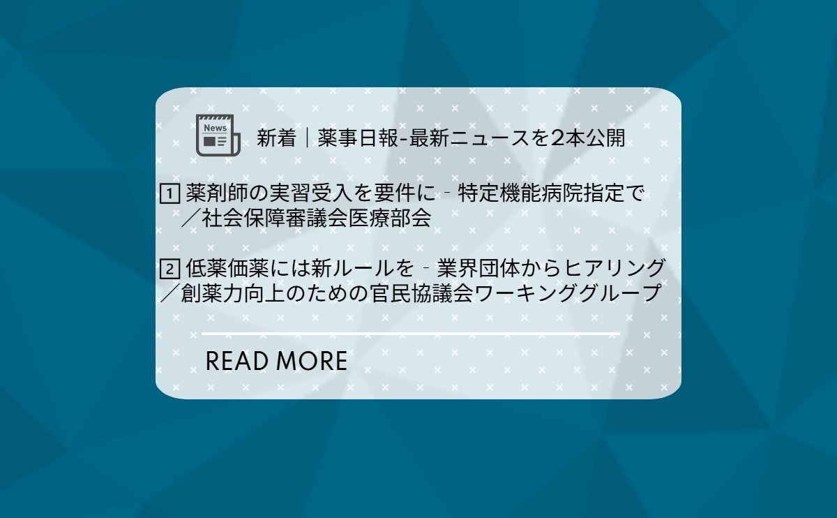 【NEW|薬事日報 更新📢】 🔹薬剤師の実習受入を要件に 特定機能病院の指定条件を審議/医療部会 🔹低薬価薬に新ルールを提案 業界団体ヒアリングで議論/官民協議会WG 💡制度・政策の最新動向チェックに👇 yaku-job.com/column/custom/… #薬事日報 #薬剤師ニュース #医療政策 #薬価 pic.x.com/gjSe4FGWpv