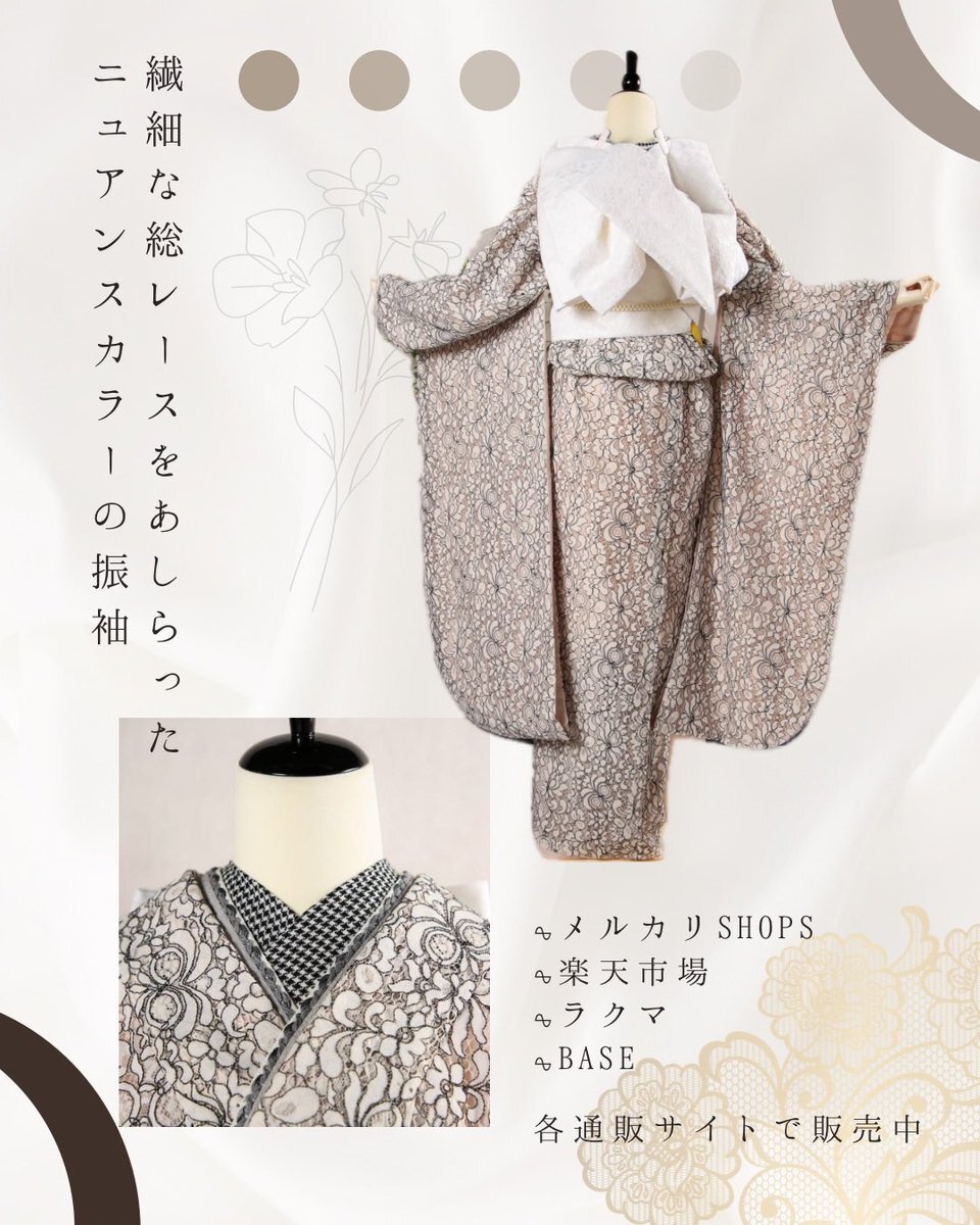 繊細な総レースをあしらったニュアンスカラーの #振袖 帯周りは白で統一し、アクセサリー感覚の帯締めをアクセントに🪞 振袖から帯、小物まで、すぐに着られるコーディネートセットを販売中˙ᴥ˙ 🛒各ショップをチェックしてみてください🕯 jp.mercari.com/shops/product/… #成人式 #卒業式 #成人式前撮り pic.x.com/6xpdZNLoLx
