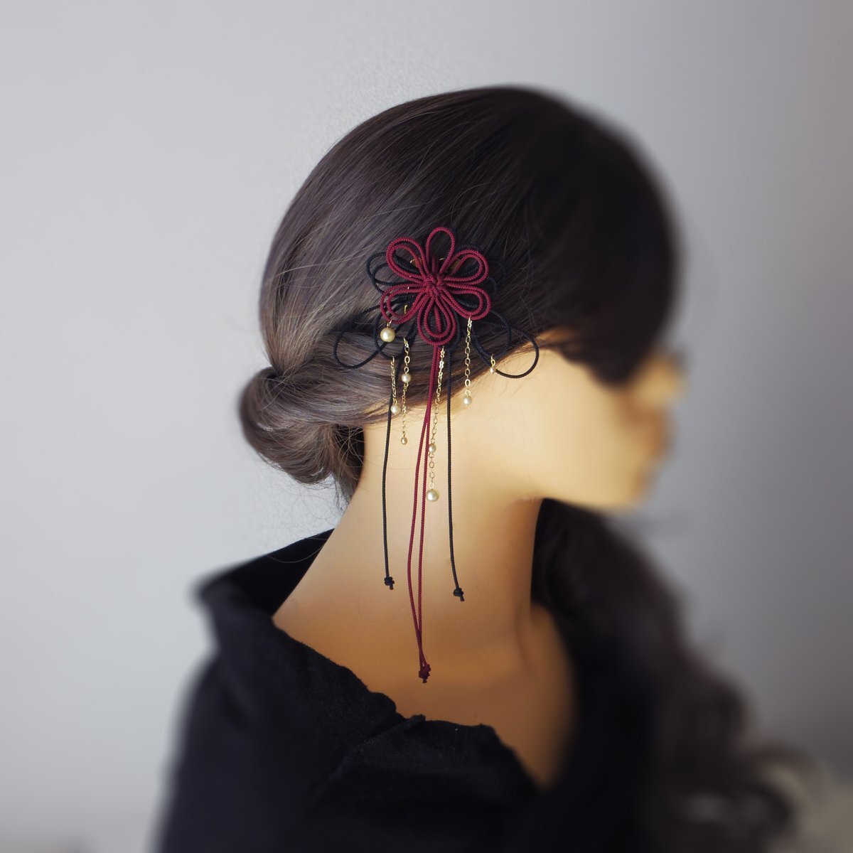12月22日(月)の再販売 ヘアコーム(小)「爛、其レハ」(臙脂×黒) | nuta design nutadesign.thebase.in/items/86461027 古い映画に登場するコスチュームのような、クラシカルに目を惹く色合わせの妙。 #BASEec #minne #creema #iichi #pinkoi #飾り結び #和装小物 #卒業式 #和装ヘア #入学式 #ギフト #非日常 pic.x.com/bXX0z1svvW