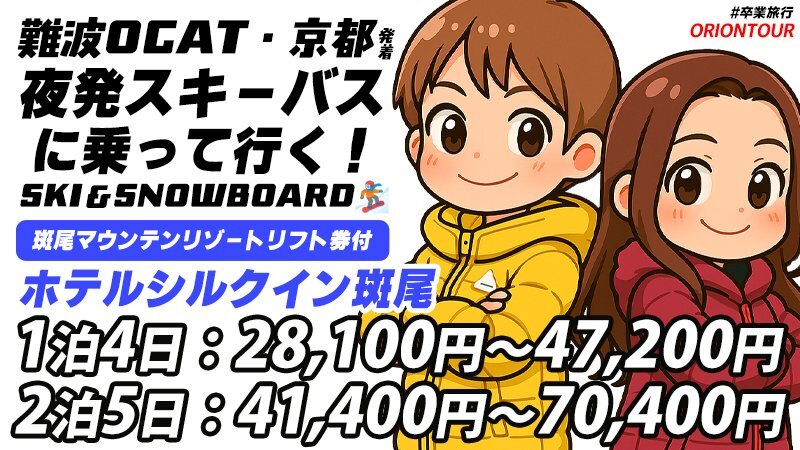 この冬、最高って言える瞬間を。 難波OCAT・京都発着🚍 夜発スキーバスに乗って行く!SKI&SNOWBOARD🏂 🏨ホテルシルクイン斑尾 宿泊パックを要チェック✨ ‣orion-ski.jp/tourtype/hotel… #旅行会社 #オリオンツアー #卒業旅行 #斑尾マウンテンリゾート #斑尾高原スキー場 #スノボ旅行 pic.x.com/ZAbh9xwxof x.com/osaka_orion/st…