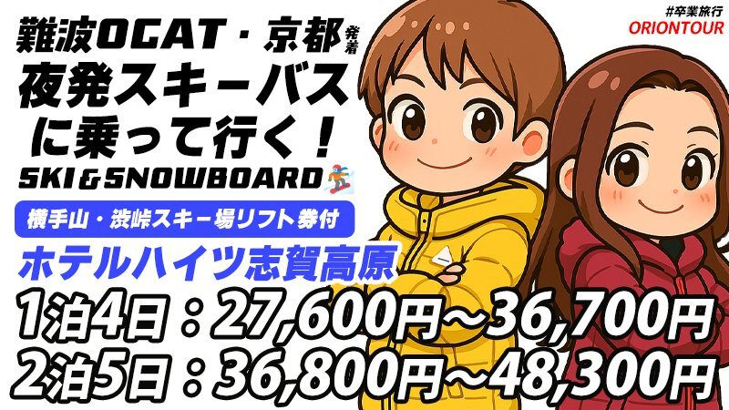この冬、最高って言える瞬間を。 難波OCAT・京都発着🚍 夜発スキーバスに乗って行く!SKI&SNOWBOARD🏂 🏨ホテルハイツ志賀高原 宿泊パックを要チェック✨ ‣orion-ski.jp/tourtype/hotel… #旅行会社 #オリオンツアー #卒業旅行 #志賀高原 #スキー場 #スノボ旅行 pic.x.com/EVsJfOmQsg x.com/orion_ski/stat…