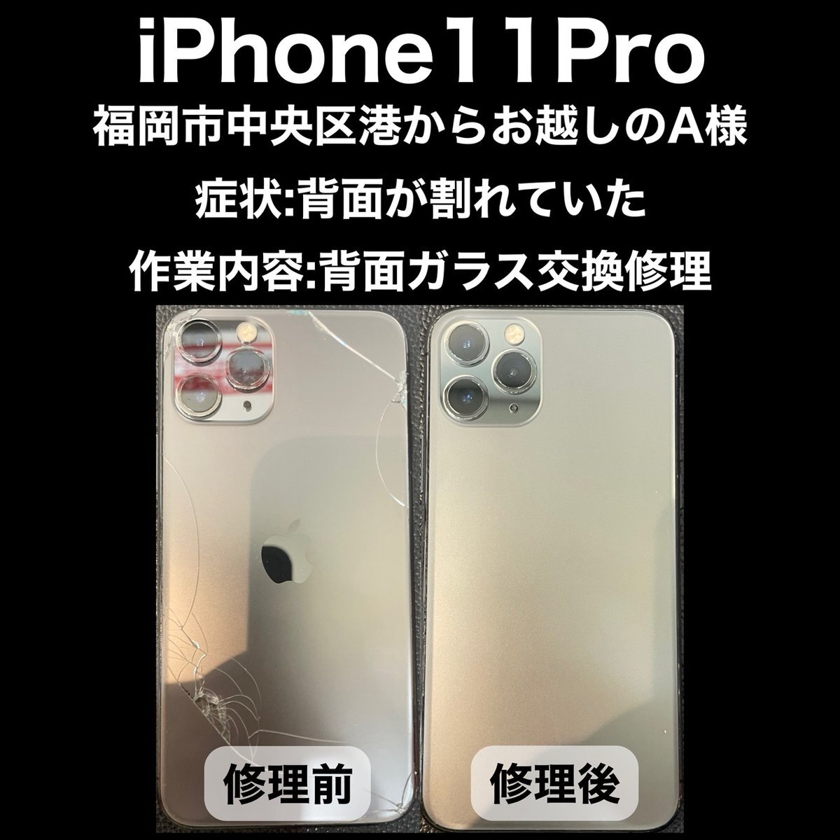 【iPhone修理】 iPhone修理 福岡市中央区港からお越しのA様 機種:iPhone11Pro 修理内容:背面ガラス交換修理 作業時間:約2時間 #iPhone #毎朝9時オープン #学割 #iPhone11Pro背面ガラス交換修理 #背面ガラス交換修理 #データそのまま #iPhone11Pro #即日修理 pic.x.com/99wOzVzqfX