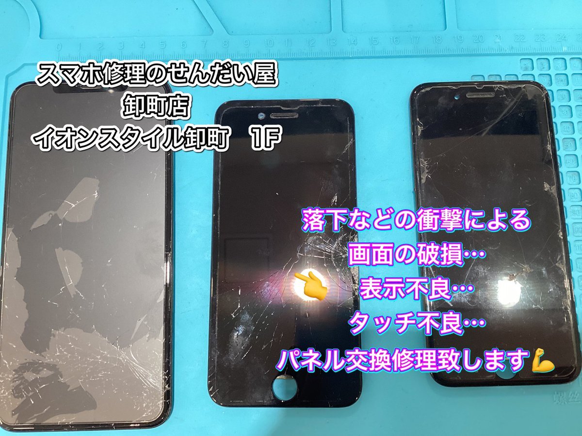 本日も20:00まで営業中🈺 画面の割れや表示の異常… そのままにして使っていませんか❓ 放置していると不具合が拡大する事も…是非当店にご相談下さい‼️ スマホ修理のせんだい屋 卸町店 イオンスタイル仙台卸町 1F ☎︎022-354-0331 #即日修理 #iPhone修理 #Switch修理 #イオンスタイル仙台卸町 pic.x.com/BpEPvp38Wy