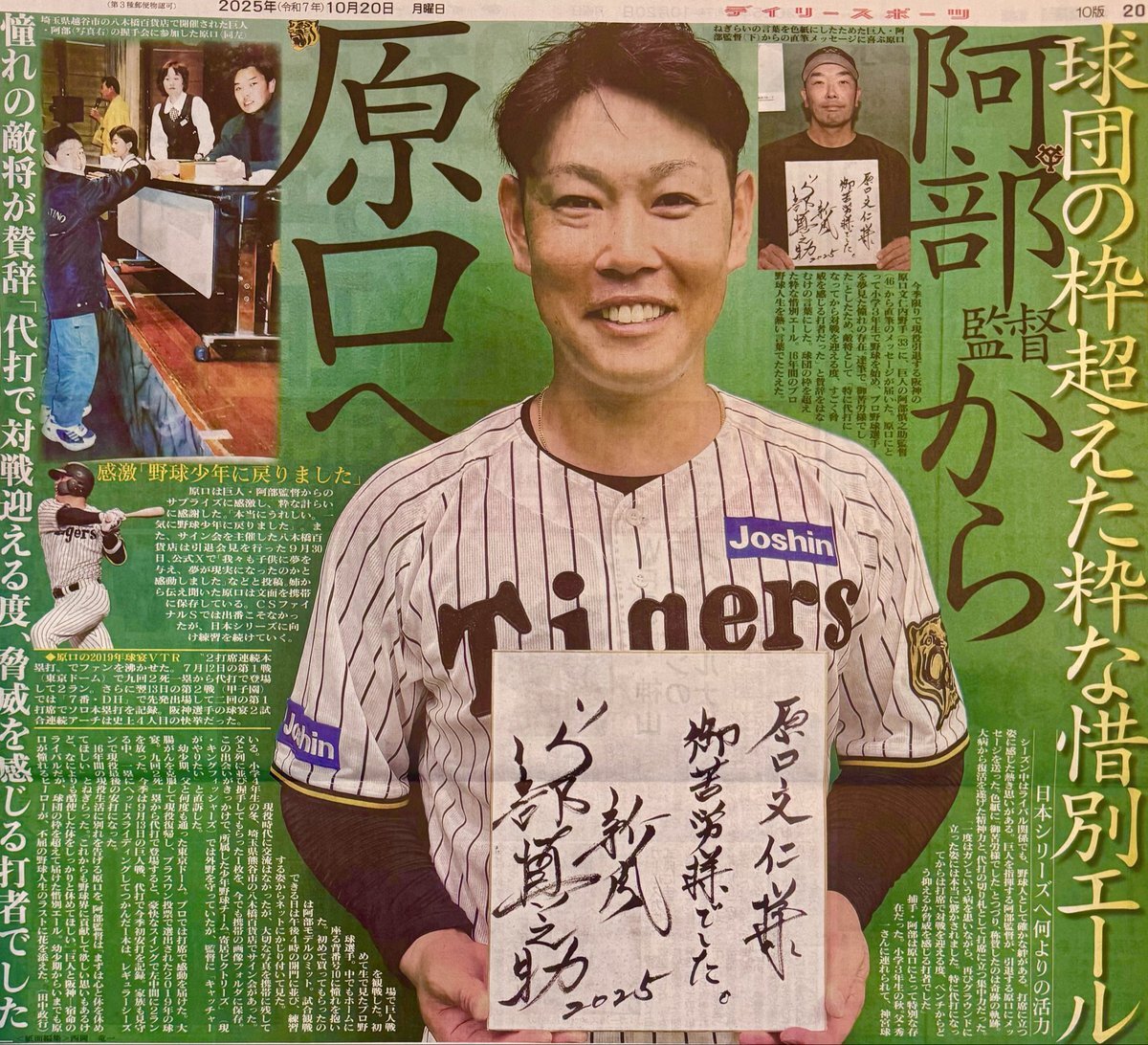 阿部監督の直筆の色紙で原口選手が感激… #阿部慎之助 監督 #原口文仁 選手 "巨人・阿部監督から阪神・原口へ直筆色紙「御苦労様でした」球団の枠超えた粋な惜別エール「脅威を感じる打者でした」" l.smartnews.com/m-6qkVfRTy/YlS…