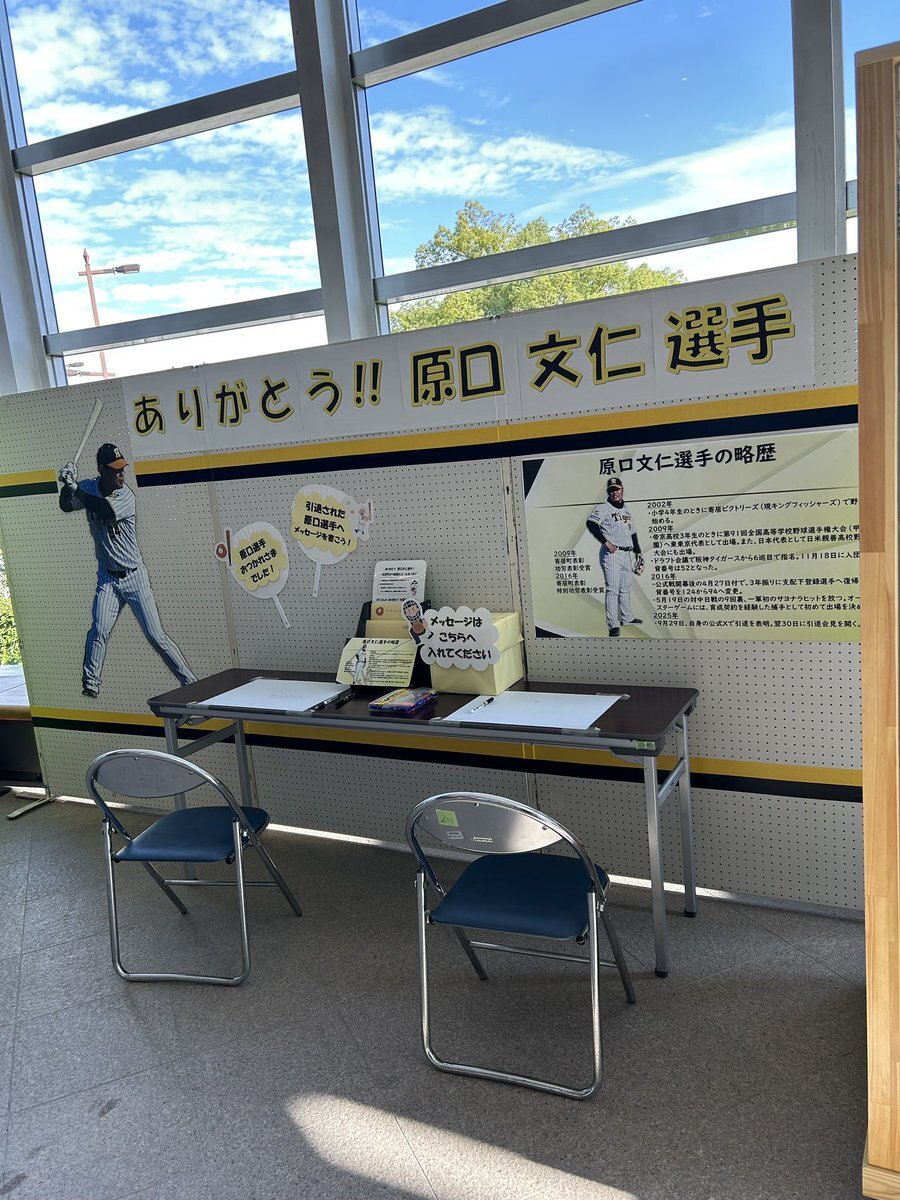 今日寄居町役場に行って来ました。ありがとう‼︎原口文仁選手コーナーで、メッセージを書いて置いて来ました。 書いている時に、マツザキスポーツさんから、声をかけられました #阪神タイガース #原口文仁 pic.x.com/fRJP3dY4SE
