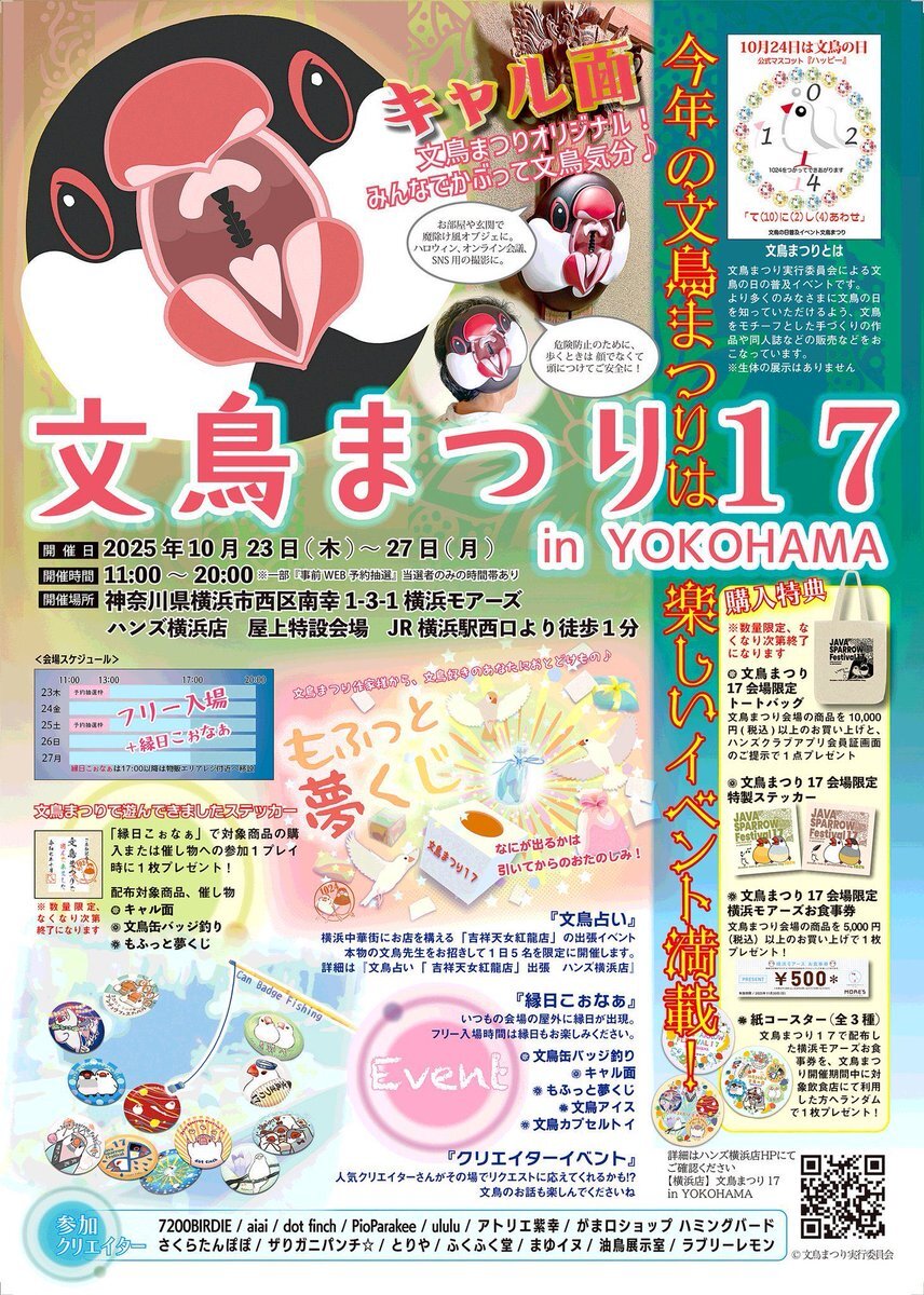 《#文鳥まつり17 》 本日10/27最終日 10/23(木)〜27(月) ハンズ横浜店 横浜モアーズ屋上特設会場 11:00〜20:00 《落葉舎》で参加 スペース D12 原画とポストカード、 B5 クリアファイルも よろしくお願いします #文鳥 #原画販売 pic.x.com/gmSrhmYEHI