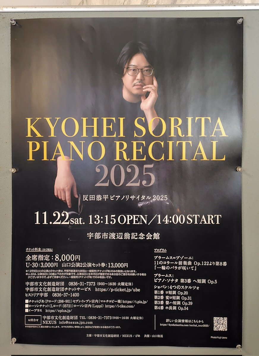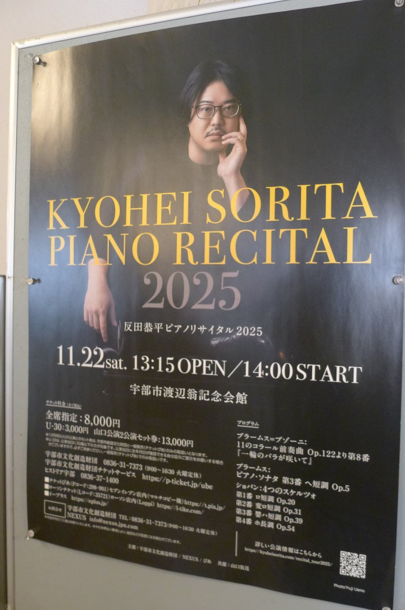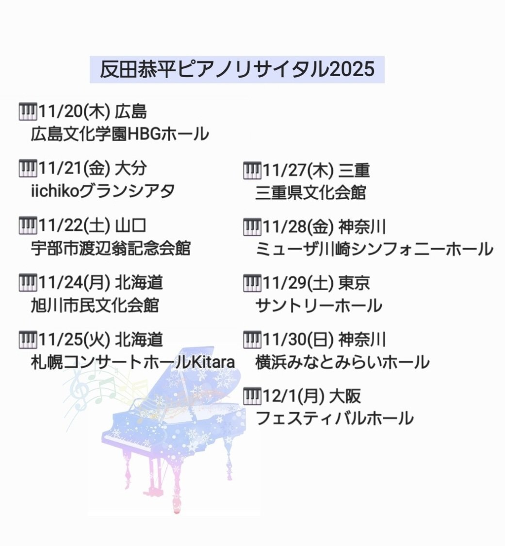 昨日は山口県宇部市へ 反田恭平さんのピアノリサイタルへ 行って来ました🎹 素晴らしい演奏を生で聴けて 至福の時間でした✨😌 またチケット取れたら行きたい🎹 11/22 14:00 #反田恭平 #山口県 #宇部市渡辺翁記念会館 pic.x.com/uJD7ZZVjaw