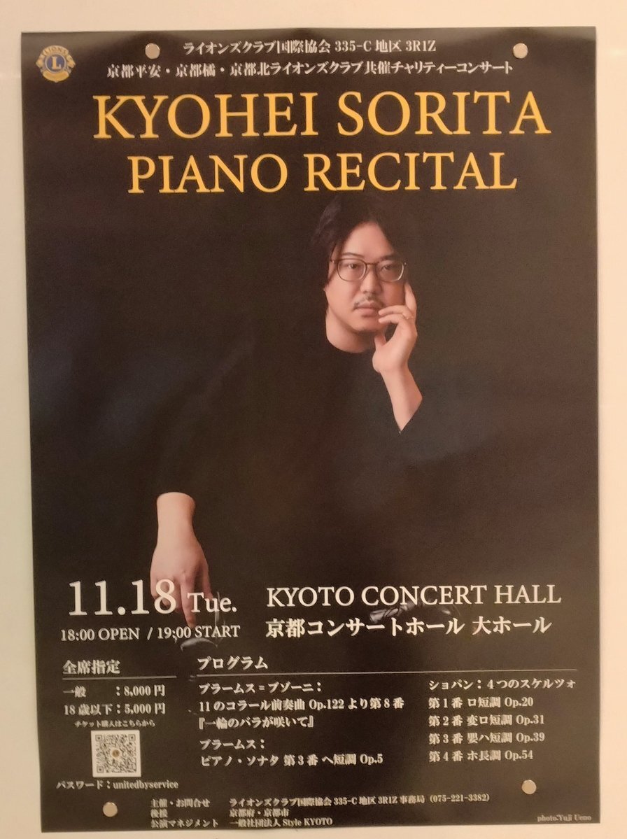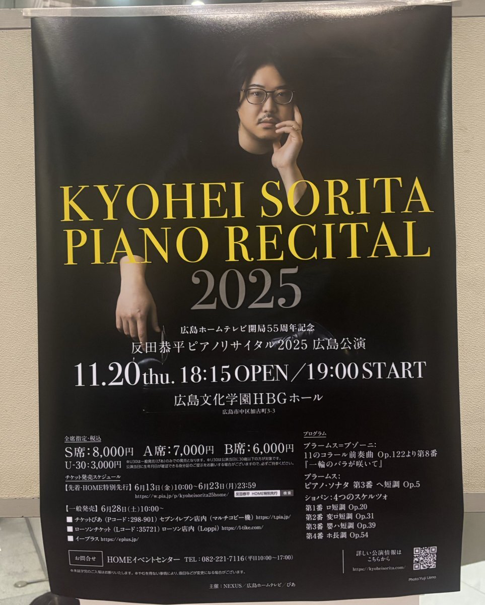 お客様が #反田恭平 さんリサイタルの広島公演のチケットをご親切に譲って下さり、本日プチ遠征致しました😆演目はブラームスのピアノソナタ3番とショパンのスケルツォ!先日福山に来られたツィメルマンを尊敬していて彼の真似だとか😲スケルツォでは2番の後にウワっと拍手が!これは気持ち分かる😂 pic.x.com/NwMl0vTUzR