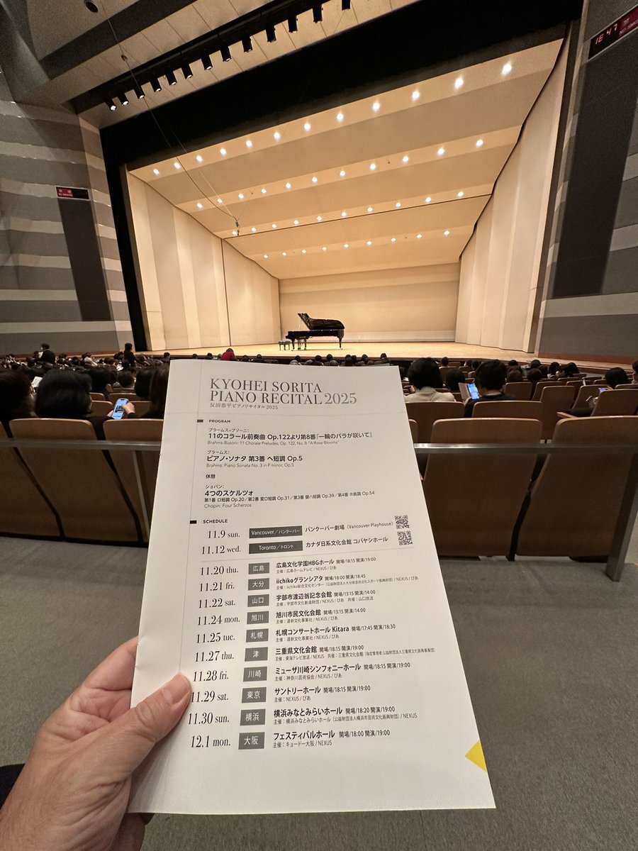 先日11/21(金)の反田恭平さんのピアノリサイタル。大分iichikoグランシアタにて。 ショパンのスケルツォ4曲まとめては、演奏者にとっても聴き手にとっても濃密なプログラムになりますね。 #大分iichikoグランシアタ #反田恭平 #ピアノ #コンサート pic.x.com/Bn6JmTeyR0