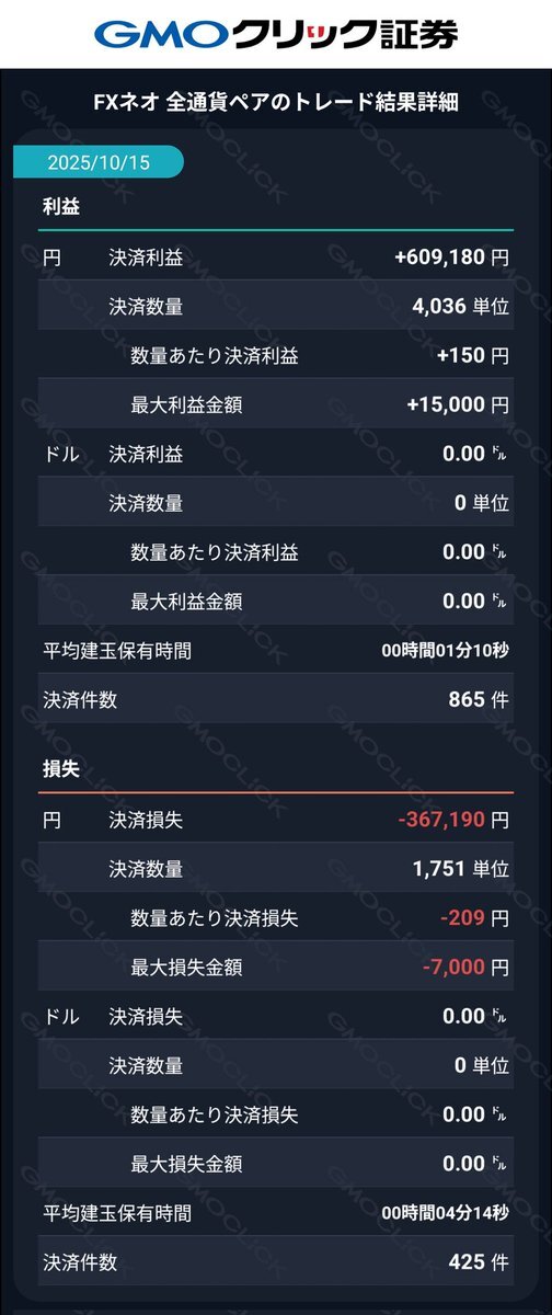 10/15 +24万 5787枚、avg.+41.8円、69.7%、0.71 後半冴えてた。 先月の負け分は今日で戻した。 明日も慎重に戦いたい。 #FX #ドル円 #収支報告 pic.x.com/bDHQdFu45t
