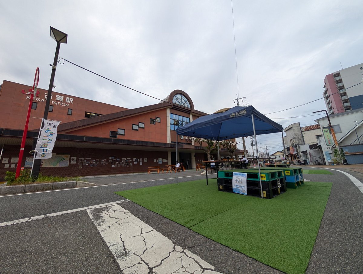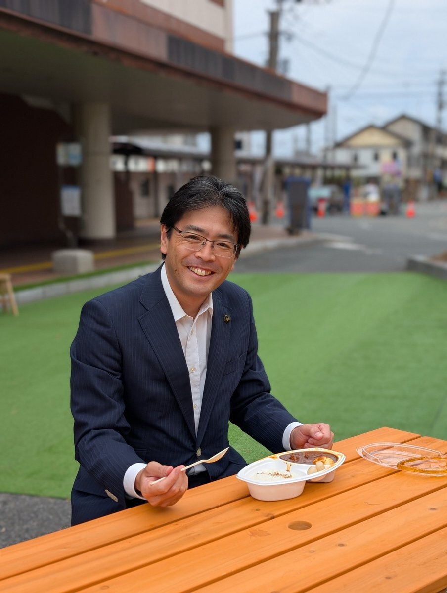 古賀駅西口の駅前ロータリー整備などを見据えた交通社会実験で、今週は道路を封鎖中。せっかくなので憩いの空間をつくっており、今日のランチは近くのお弁当屋 NEW PUBLIC SALOON さんでチキンビンダルーを買っていただきました。通りがかりの近所のご夫婦との会話も弾み、いい昼下がり。 #古賀市 pic.x.com/uF2XarTMDp