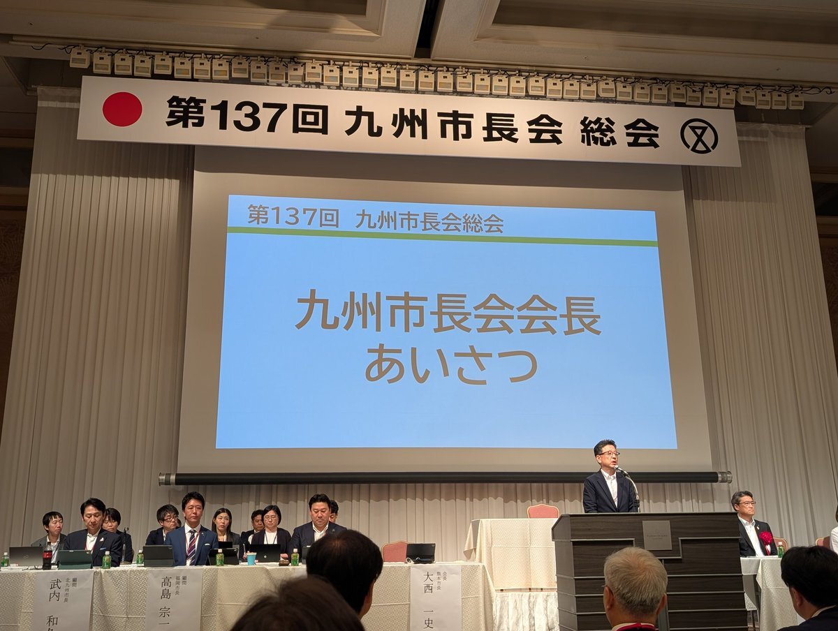 九州市長会総会が宮崎市で開催されました。九州はひとつ。会長の大西一史・熊本市長のリーダーシップのもと、地方の暮らしの現場の声をまとめ、国に伝えています。今回は東九州で大きな被害が想定される南海トラフ地震を見据え、自治体同士の受援・支援体制も決定しました。 #古賀市 #宮崎市 #九州 pic.x.com/JPntH5bRIJ x.com/fukuda_nakama/…