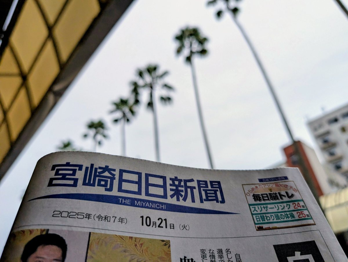 宮崎の朝、ウォーキングからスタート!九州市長会総会で昨日から宮崎市に来ています。出張先では地元紙を。今日も頑張りましょう💪 #古賀市 #宮崎市 #宮崎日日新聞 pic.x.com/lQluJLprel