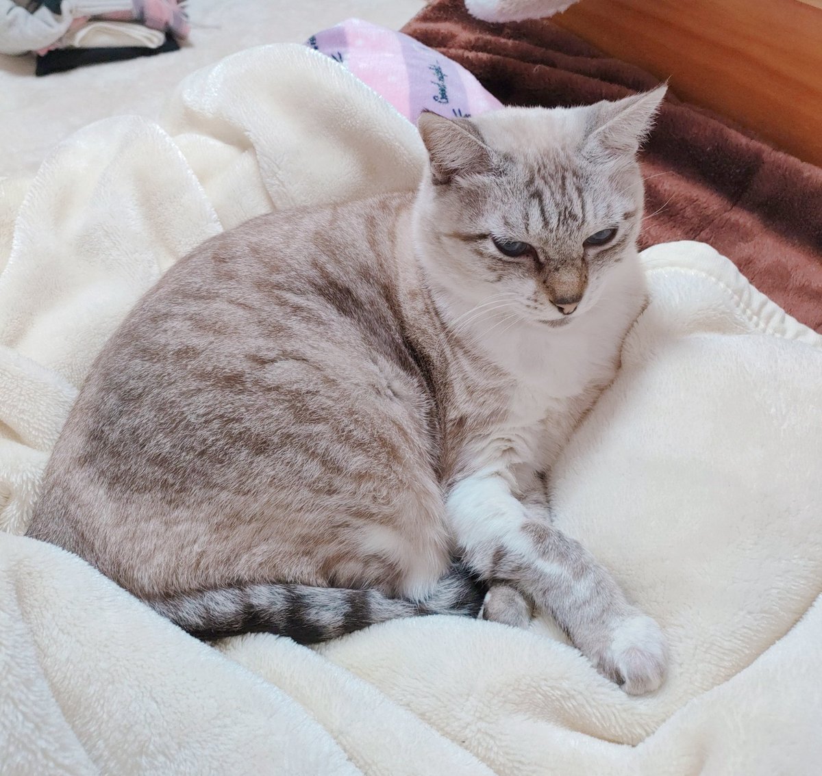 いっつも「ここに居たんだぁ〜〜ゆったん♡」って発見した時テンション高めにガバッて顔近づけてギュってするから直ぐこんな顔になっちゃう🥲 #シャムトラ #猫 #可愛すぎて pic.x.com/YUaIMAHBQy