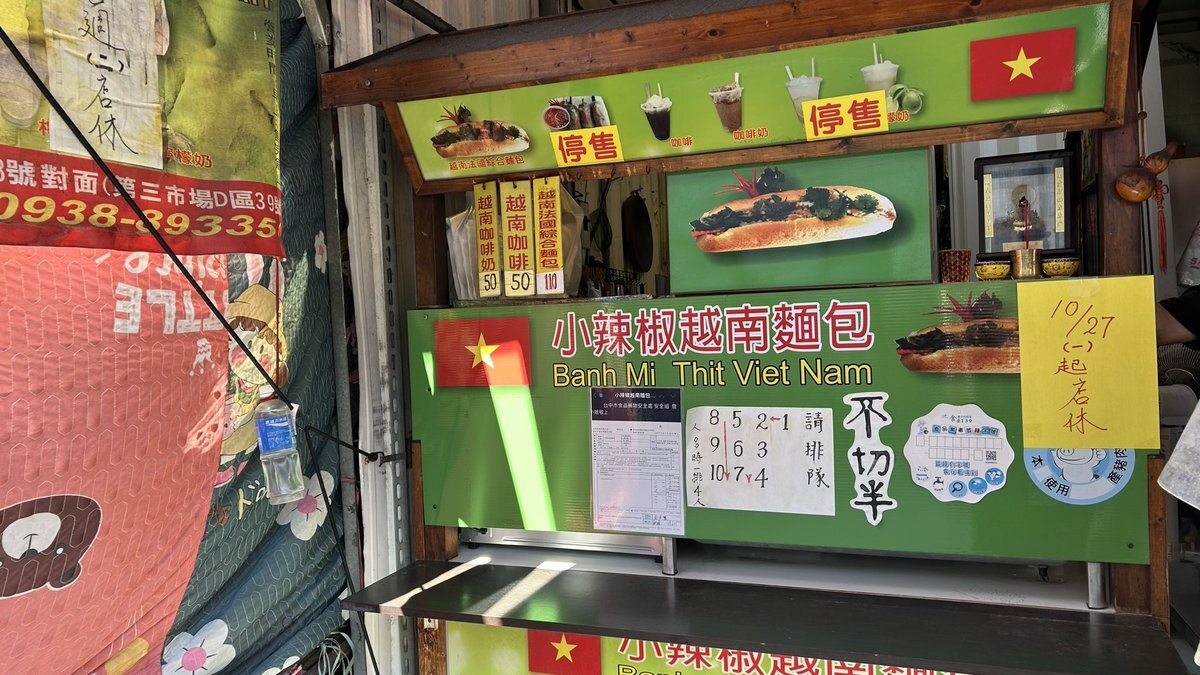 小辣椒越南麵包 辛さは「不要辣(キリッ」で注文🥖 5組並んでいて20分待ちました🤭 📺 youtu.be/jTvDHl8V2MY?si… リンリンが紹介してた お店の裏手にある公園のベンチで頂きました。 ザックザク食感のパンと野菜のマリネが最高🥳価格はNT$110でした。 ⚠10/27からお休みのようです #台湾旅行 #台中 pic.x.com/CwcC8HG8h7