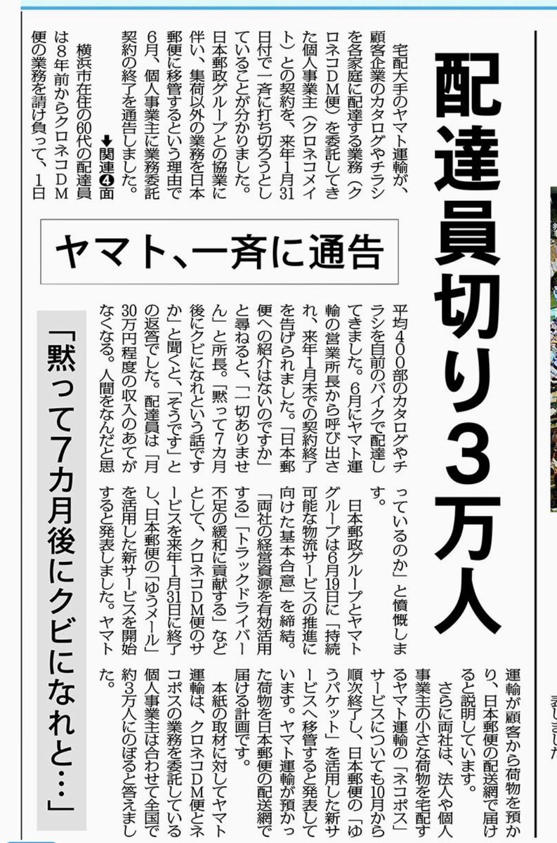 【ヤマト運輸が3万人との契約を来年1月で打ち切り】 60代配達員「黙ってクビになれという話か」☞「そうです」 🧐クロネコDM配達を委託してきた個人事業主の首切り 配達員の多くは年金だけでは生活厳しい高齢者達🧓 #2024年問題 #台風一過 パスワード pic.x.com/EgT6aE2pt6