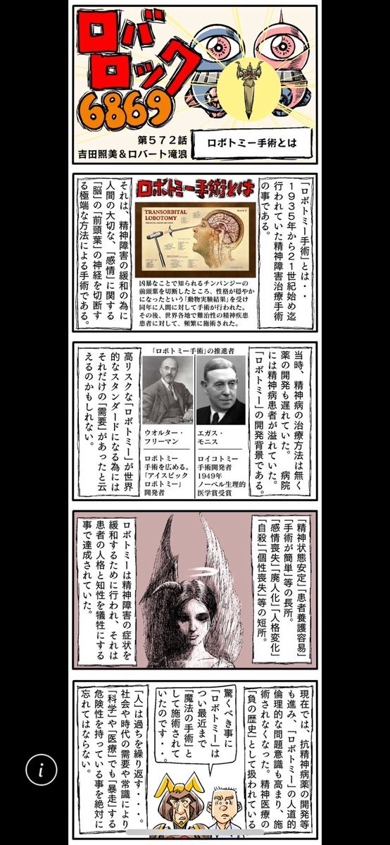 #ロバロック Xとインスタグラムで、毎週月曜日に同時配信。連載を始めて、6年。遂に、この漫画ロバロックのアニメ映画化のプロデューサーを、名探偵コナンの諏訪道彦が担当。ご期待を!1962年の東京からタイムスリップして来た吉村少年たち。世話になったオッさんが、ロボトミーの危機に!!第572話