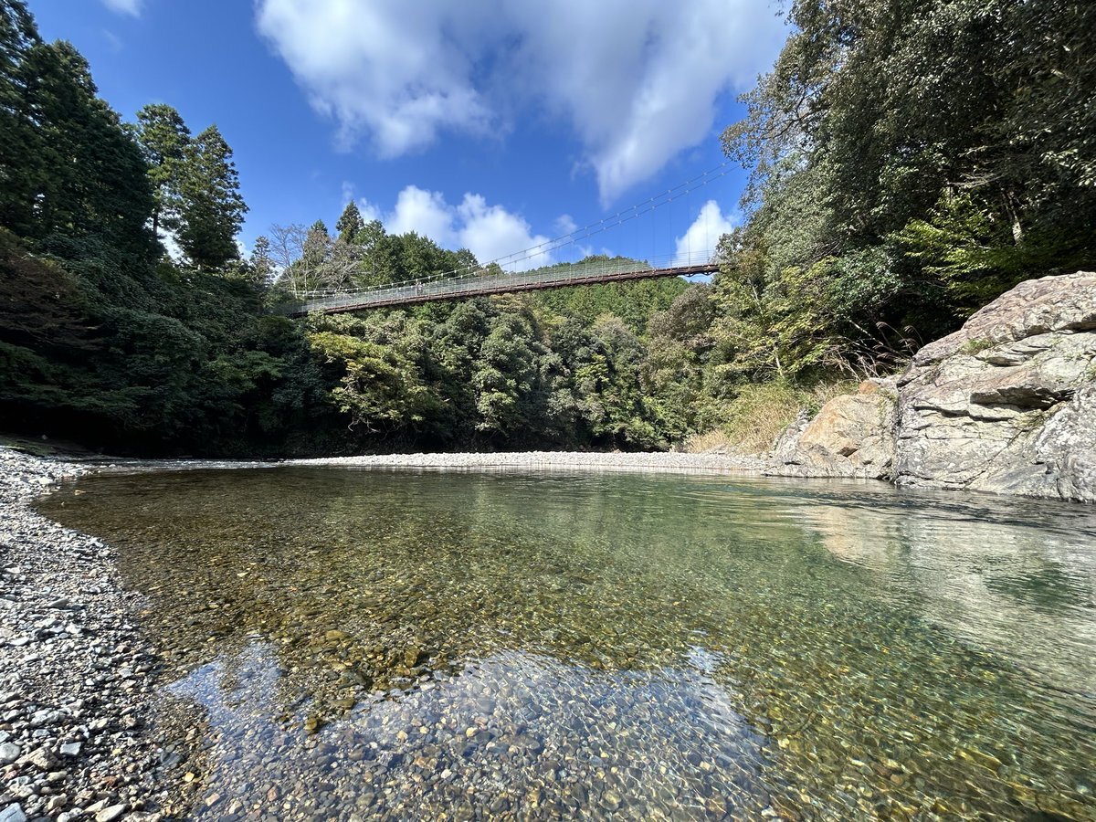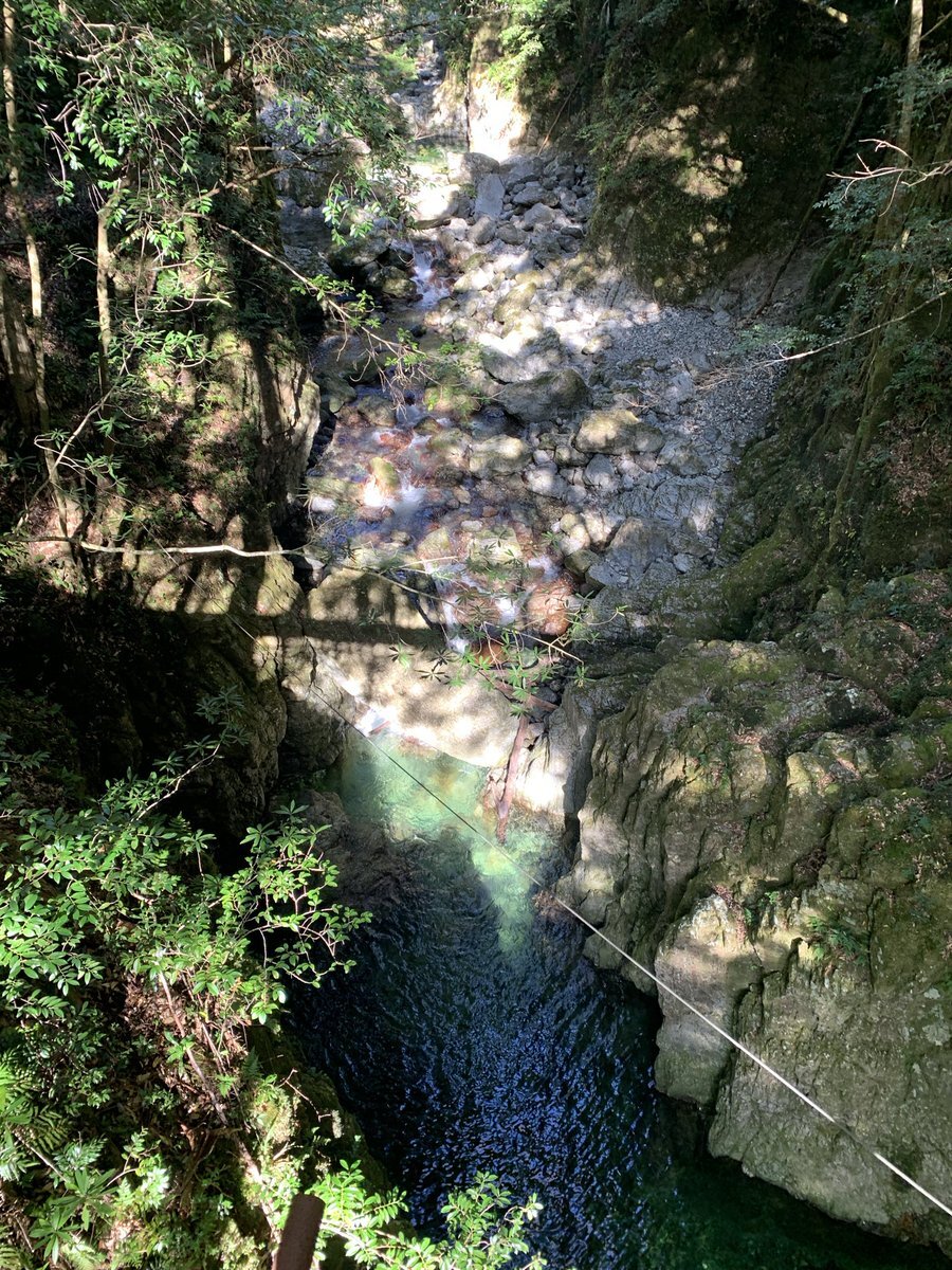 #川代渓谷 #吊り橋 御機嫌よう 昨日ポストした吊り橋より約3km下流の吊り橋で中央辺りにグレーチングがあり真下が見えスリル満点だ❗スマイルを忘れずヨキヨキな日和を😃 pic.x.com/p04xJ5UDmA