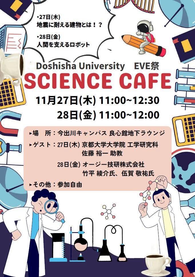 SC講義の教え子 有志が 同志社 EVE祭にて 「サイエンスカフェ」に初挑戦🏫 ‥陰ながらサポートしようと思いつつ、 はたして今出川の学園祭の雰囲気は 京田辺とどう違うのか、不安です笑 #同志社大学 #EVE pic.x.com/gjJOpGyknb