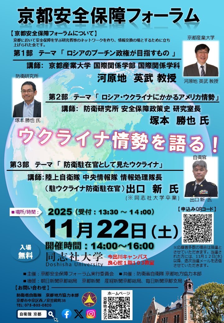 明日22日は「京都安全保障フォーラム」へ💁♀️ 今回、同伴者の都合が悪くなり わたくしソロ参加でございます! #安全保障フォーラム #同志社大学 #防衛モニター pic.x.com/6ByN4w8l0f