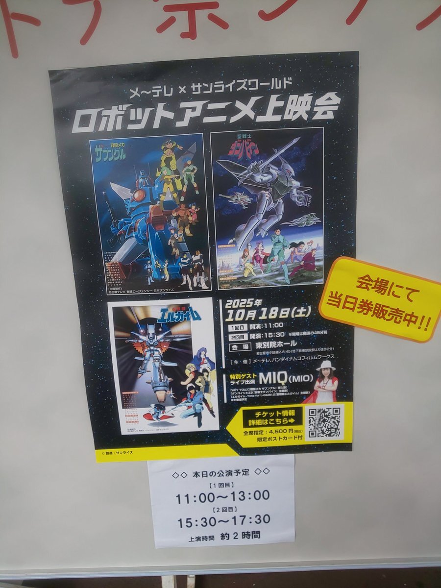 本日、生ライブで観てきましたが 変わらずでしたぁ~( ≧∀≦)ノ と、場所も、隣のほぼ変わらずな。(|| ゜Д゜) #メ~テレ #名古屋テレビ #ドデ祭 #エルガイム #MIQ #MIO #サンライズワールド #サンライズワールド上映会 pic.x.com/tfJ9YKLHTJ x.com/Vf1jmacross/st…