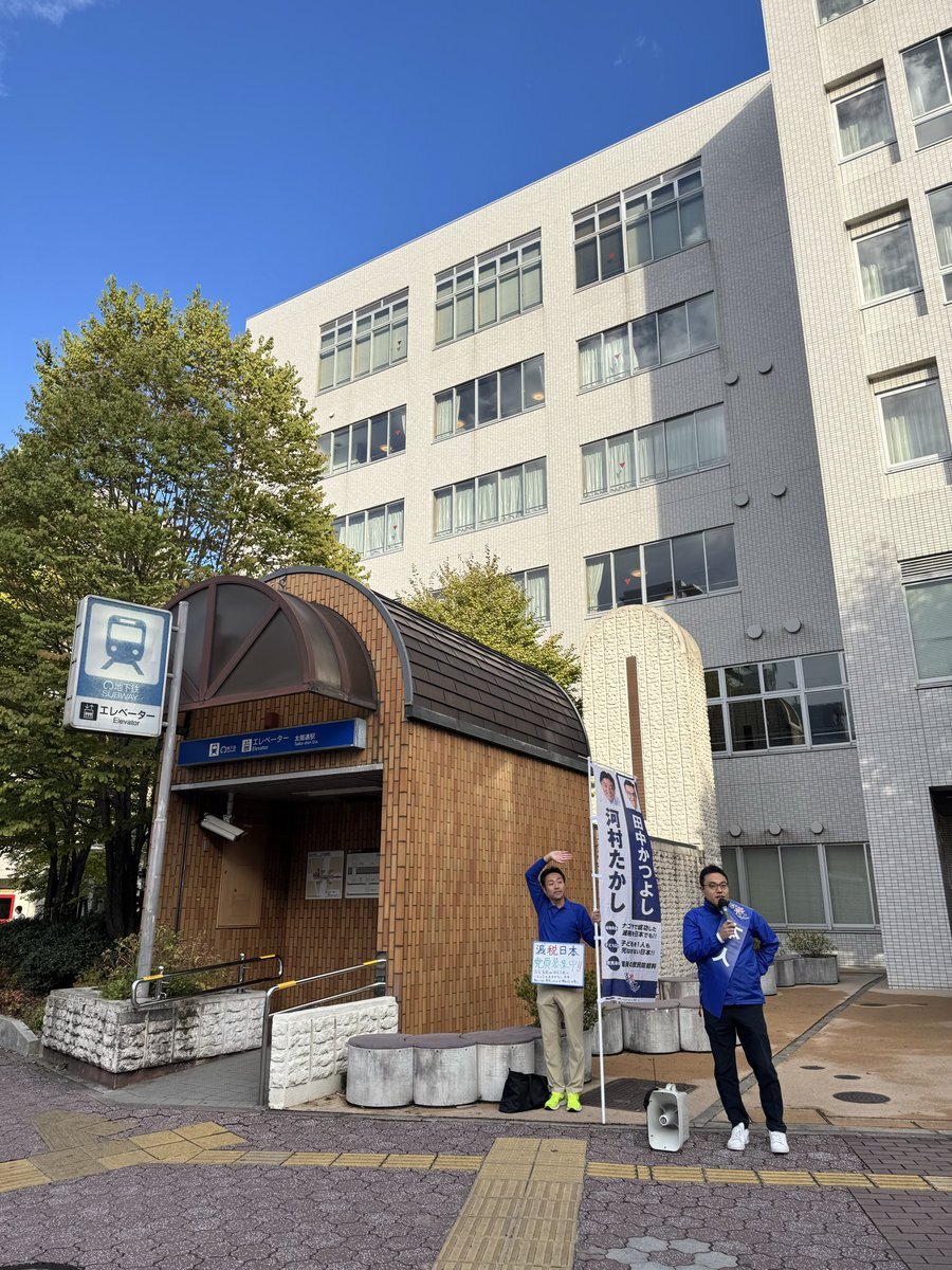おはようございます! 今朝は太閤通駅からスタートです 街頭演説中に電池が切れまして、慌てて向かいのコンビニで電池を買い交換しました。 今日は昨日ほどではないですが、肌寒くなってきました。体調等崩さないようお気をつけてお過ごしください!