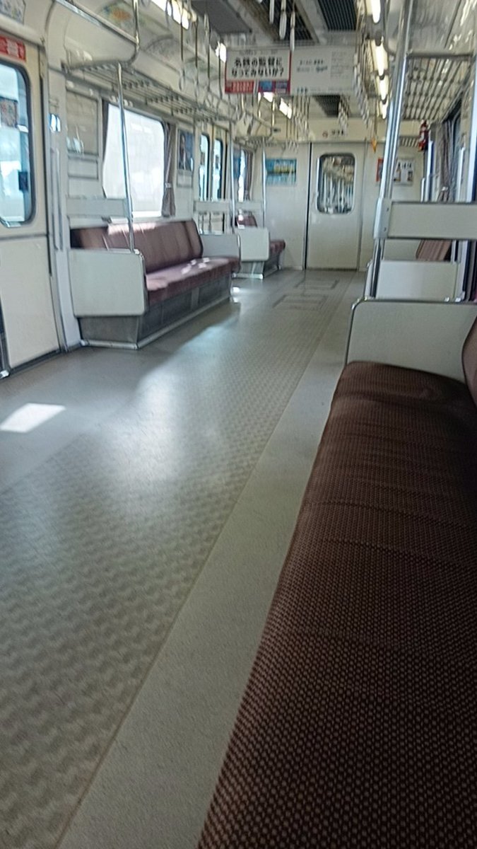 #名古屋市交通局 #名古屋鉄道 #レア車 名古屋市営地下鉄で珍しい転換式クロスシートを備えた車両といえば名鉄小牧線にも乗り入れている上飯田線の2編成しかいない7000型ですね…。 x.com/JUSCOmania/sta…