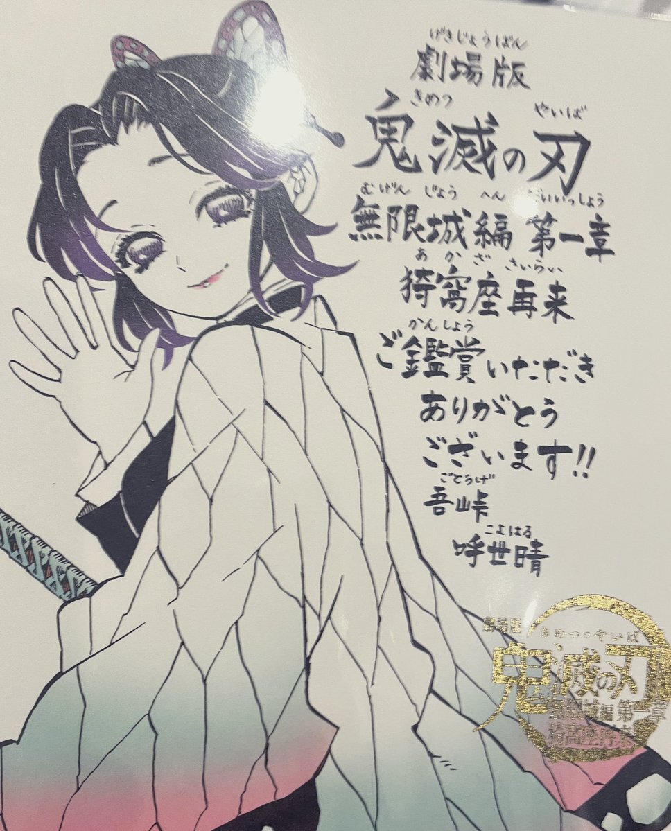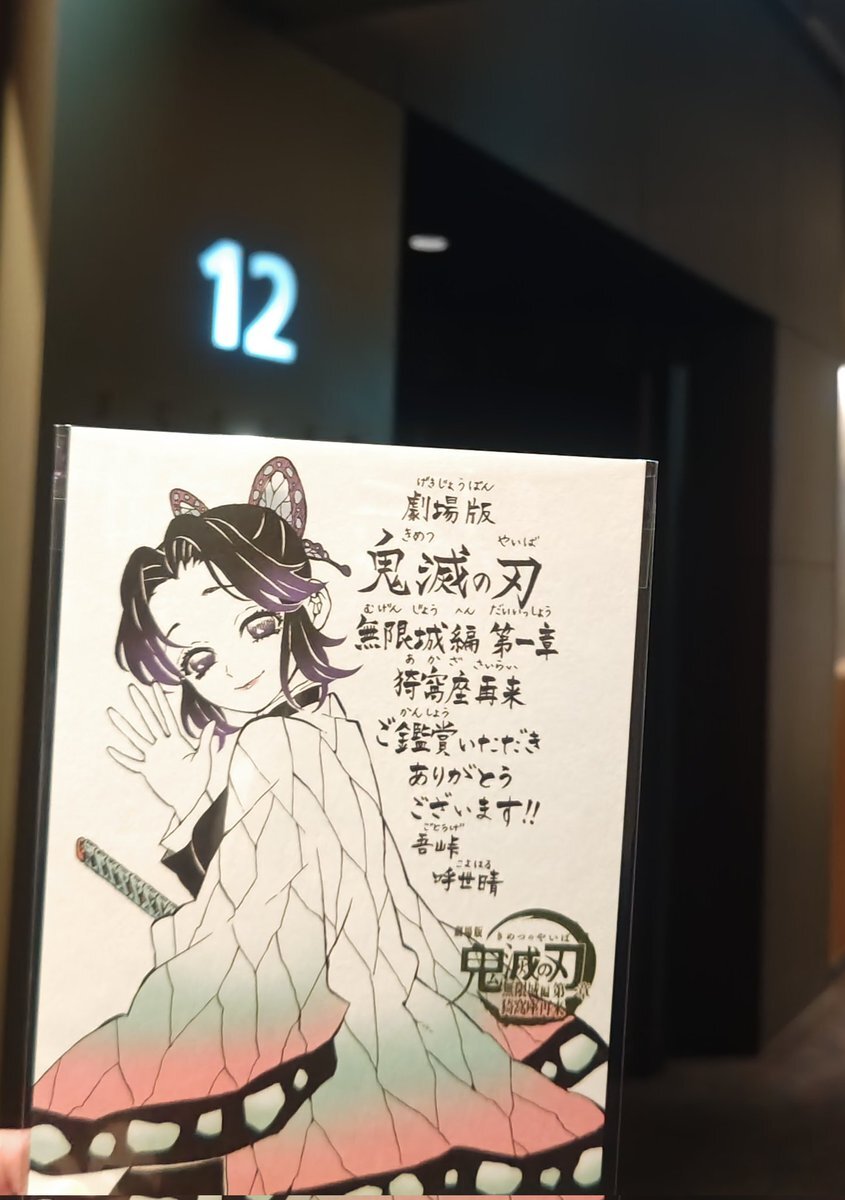 ほわぁ(*´ω`*) 吾峠先生のしのぶさんにやっと会えたぁ😭 素敵やー 感激よぉ そして今日も定位置最前列ど真ん中に着席! #鬼滅の刃 #無限城編第一章猗窩座再来 #吾峠呼世晴 #胡蝶しのぶ pic.x.com/84Lok3QUQD