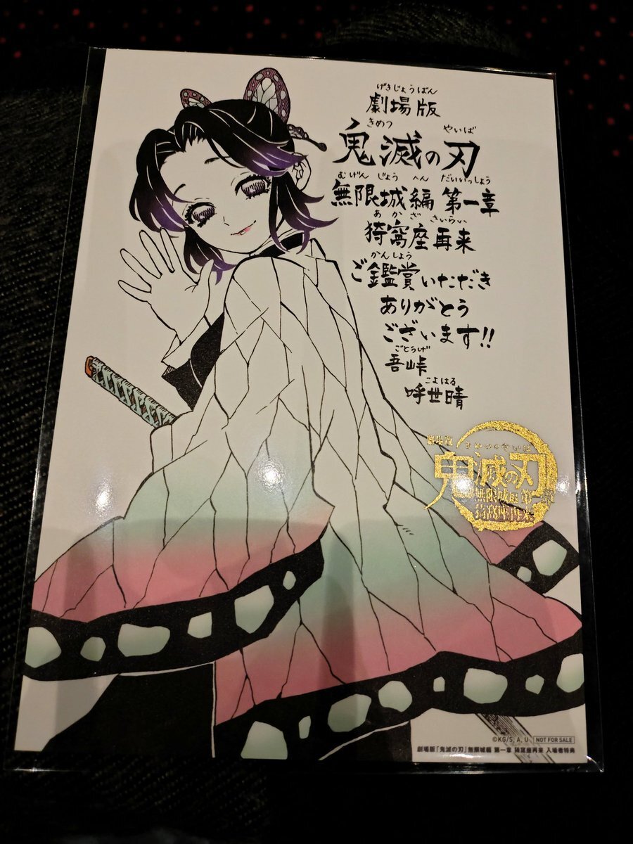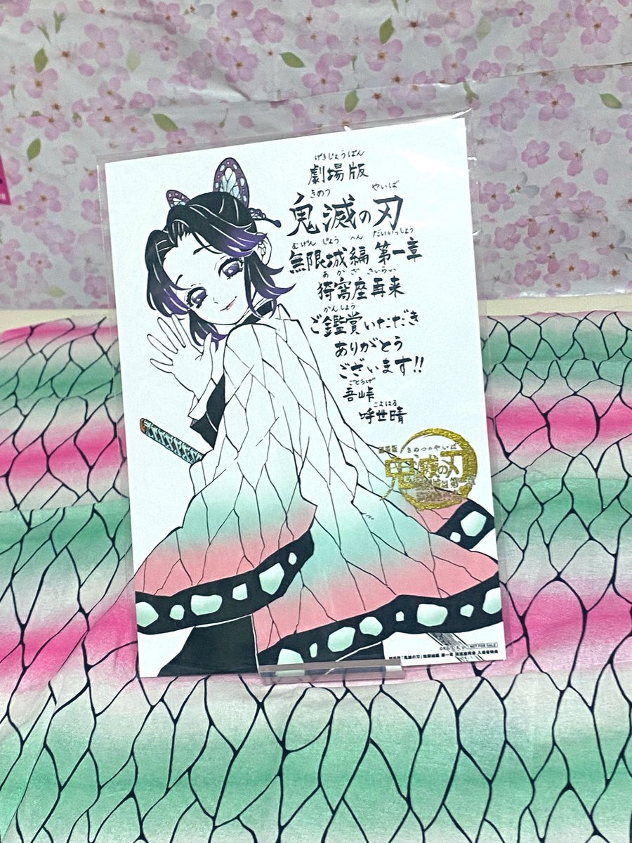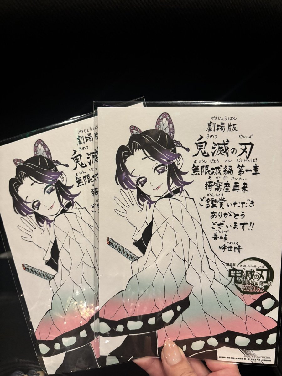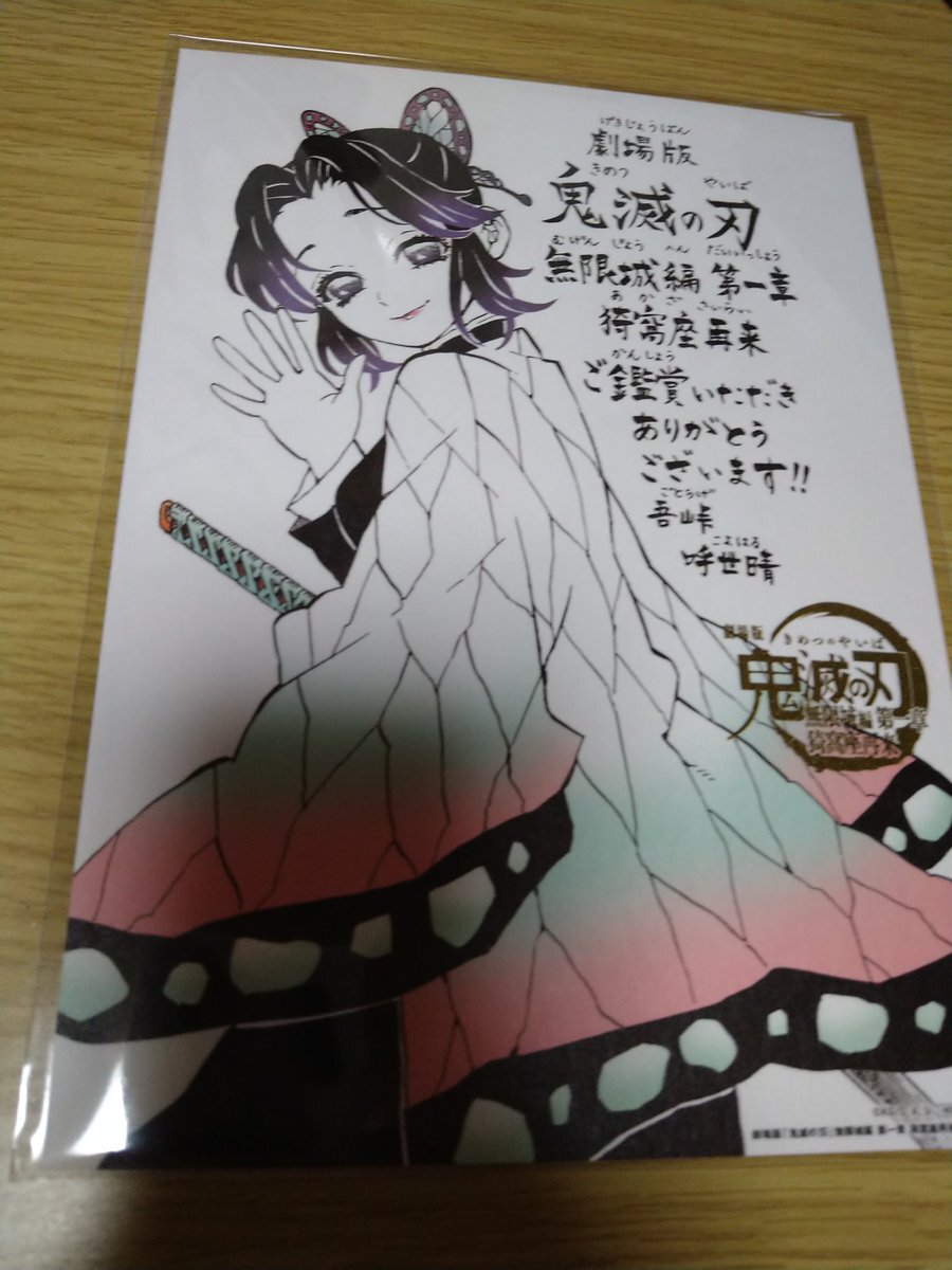 仕事おわったあと、映画館に行きました。この特典は見逃せなかった。 #吾峠呼世晴 先生、#鬼滅の刃 を生んでくださりありがとうございました。 しかも、しのぶさん❤️ #一番くじ は、終わってた。 pic.x.com/jo2akGiAo2