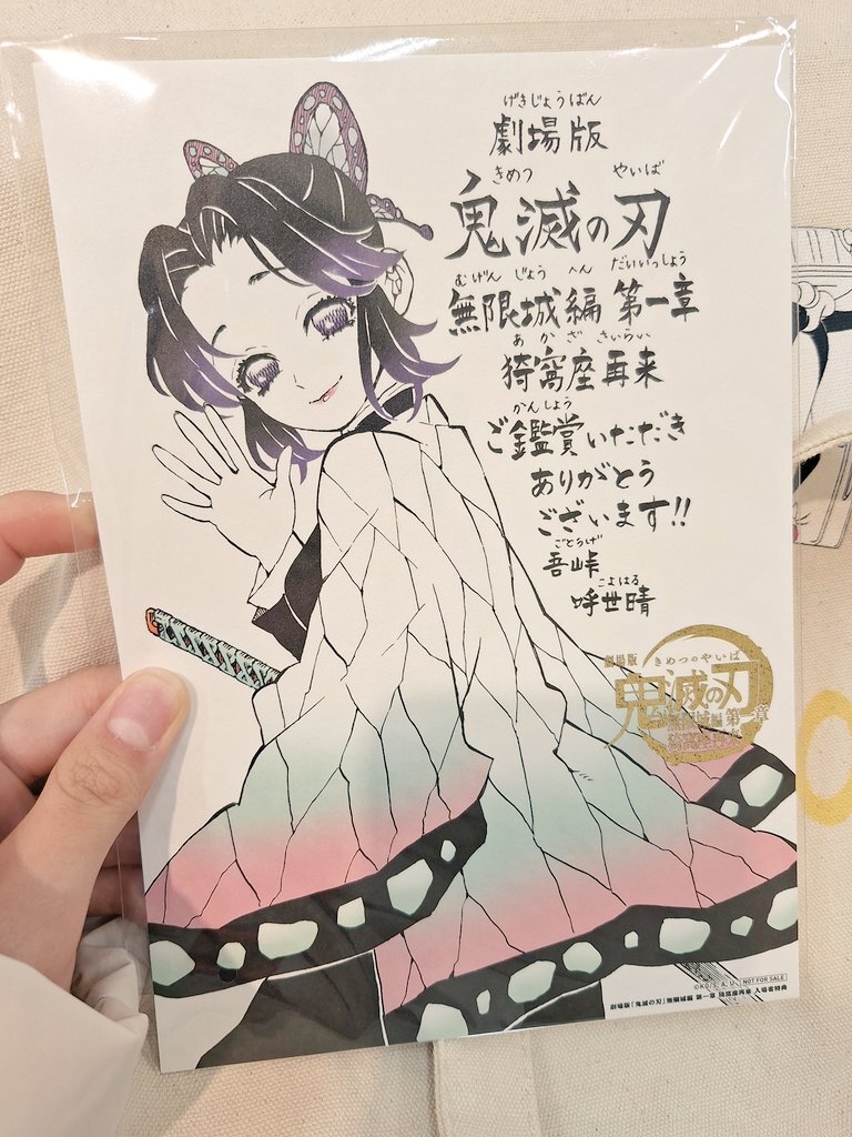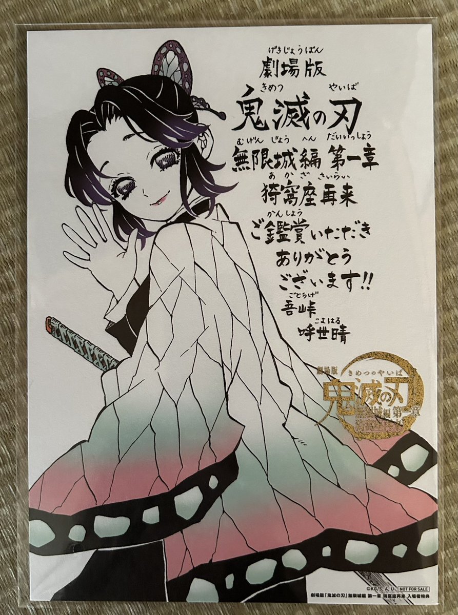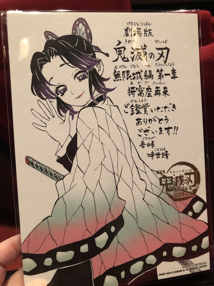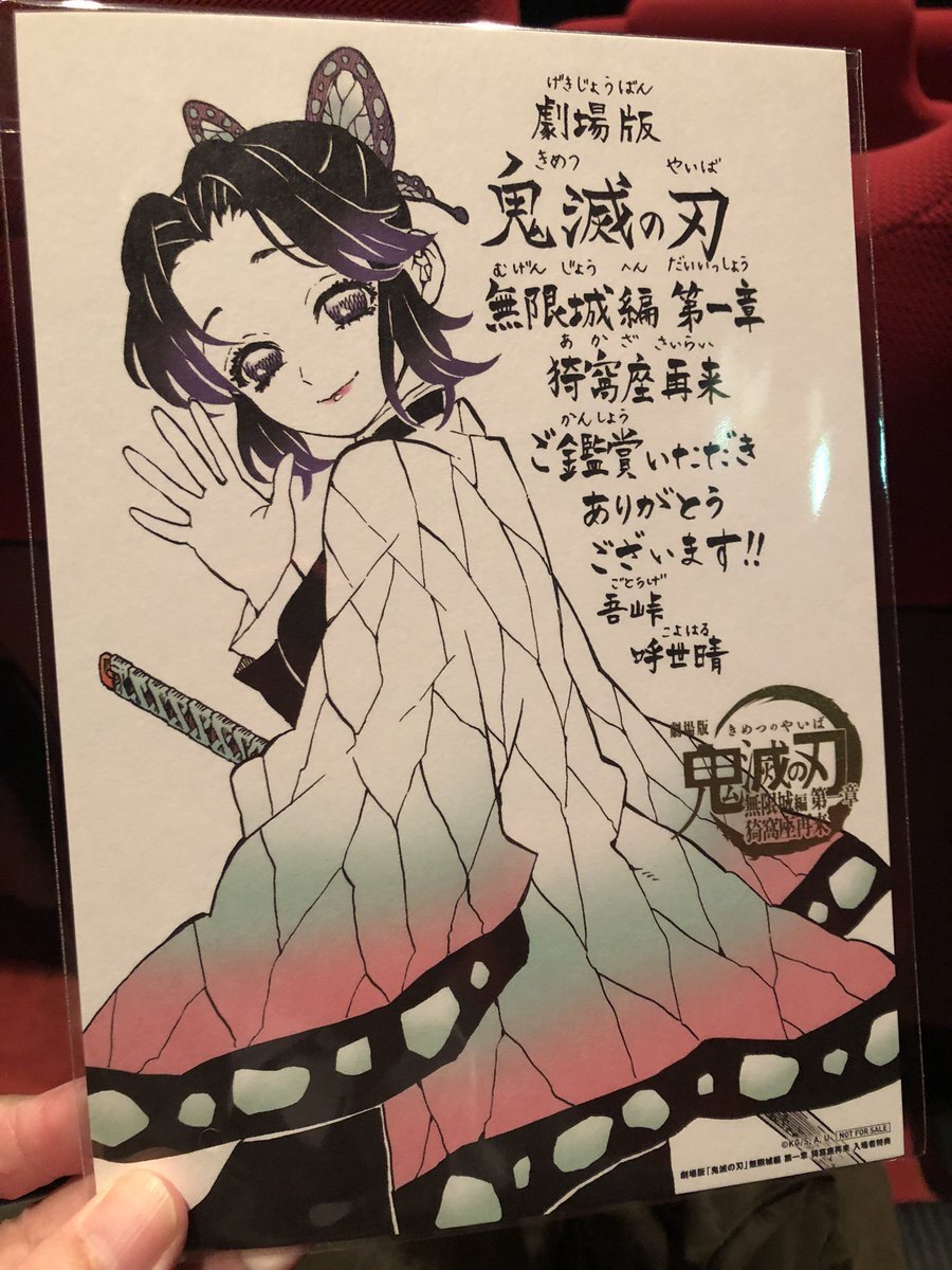 仕事おわったあと、映画館に行きました。この特典は見逃せなかった。 #吾峠呼世晴 先生、#鬼滅の刃 を生んでくださりありがとうございました。 しかも、しのぶさん❤️ #一番くじ は、終わってた。 pic.x.com/jo2akGiAo2
